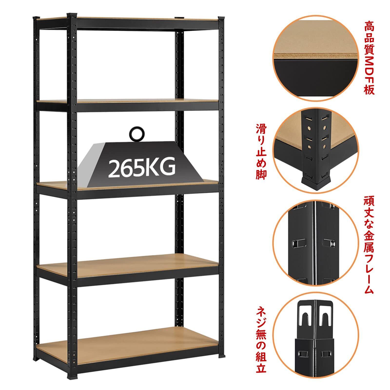 【数量限定】Yaheetech キッチンラック スチールラック本体 幅90 メタルラック 5段 収納棚 高さ調節可 ステンレスラック 収納ラック 防サビ加工 ネジなし 組立簡単 90×45×180cm 耐荷重1325kg キッチン 物置 倉庫 ガレージ | ニコニコSHOP