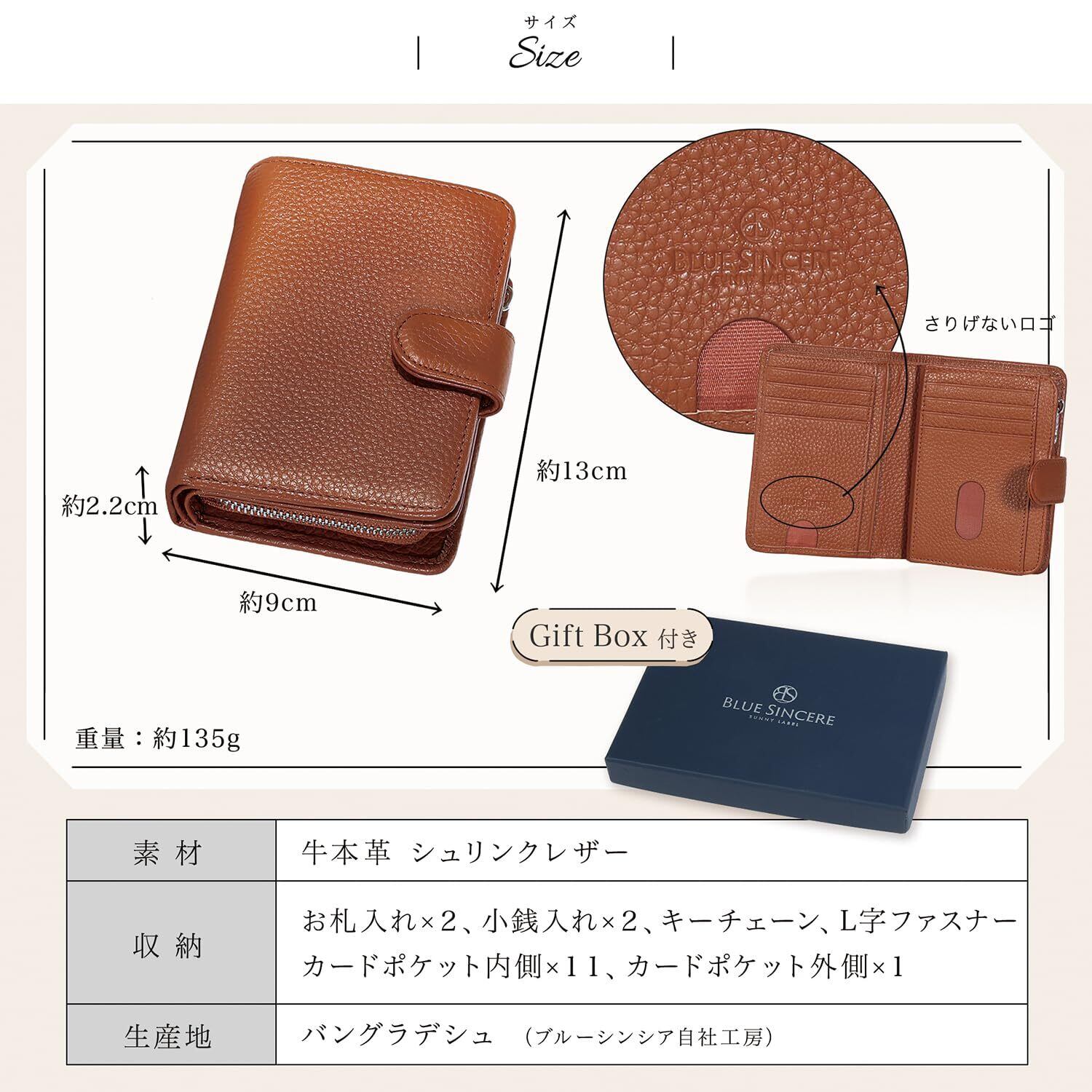 [BLUE SINCERE] 一流の革職人が紡ぎだす 二つ折り財布 本革 レディース RFID スキミング防止 大容量 カード15枚収納 ミドルサイズ ミニ財布 コンパクト 小銭入れあり / HW3 (メタリックシルバー)