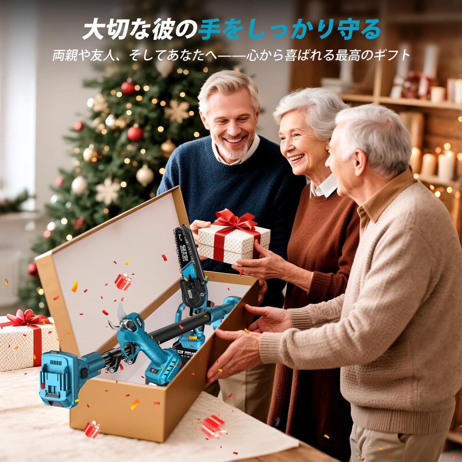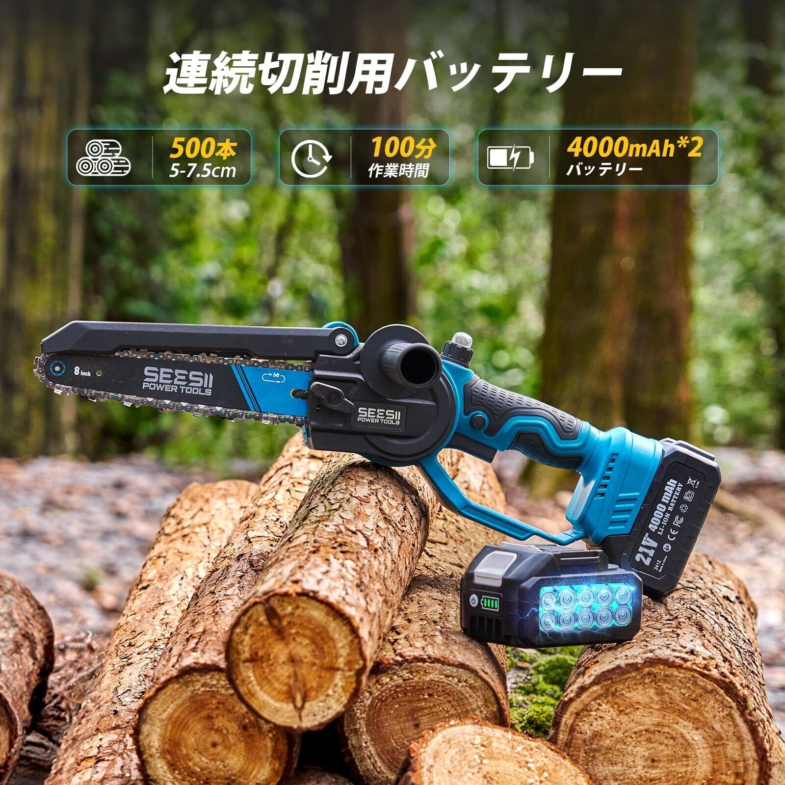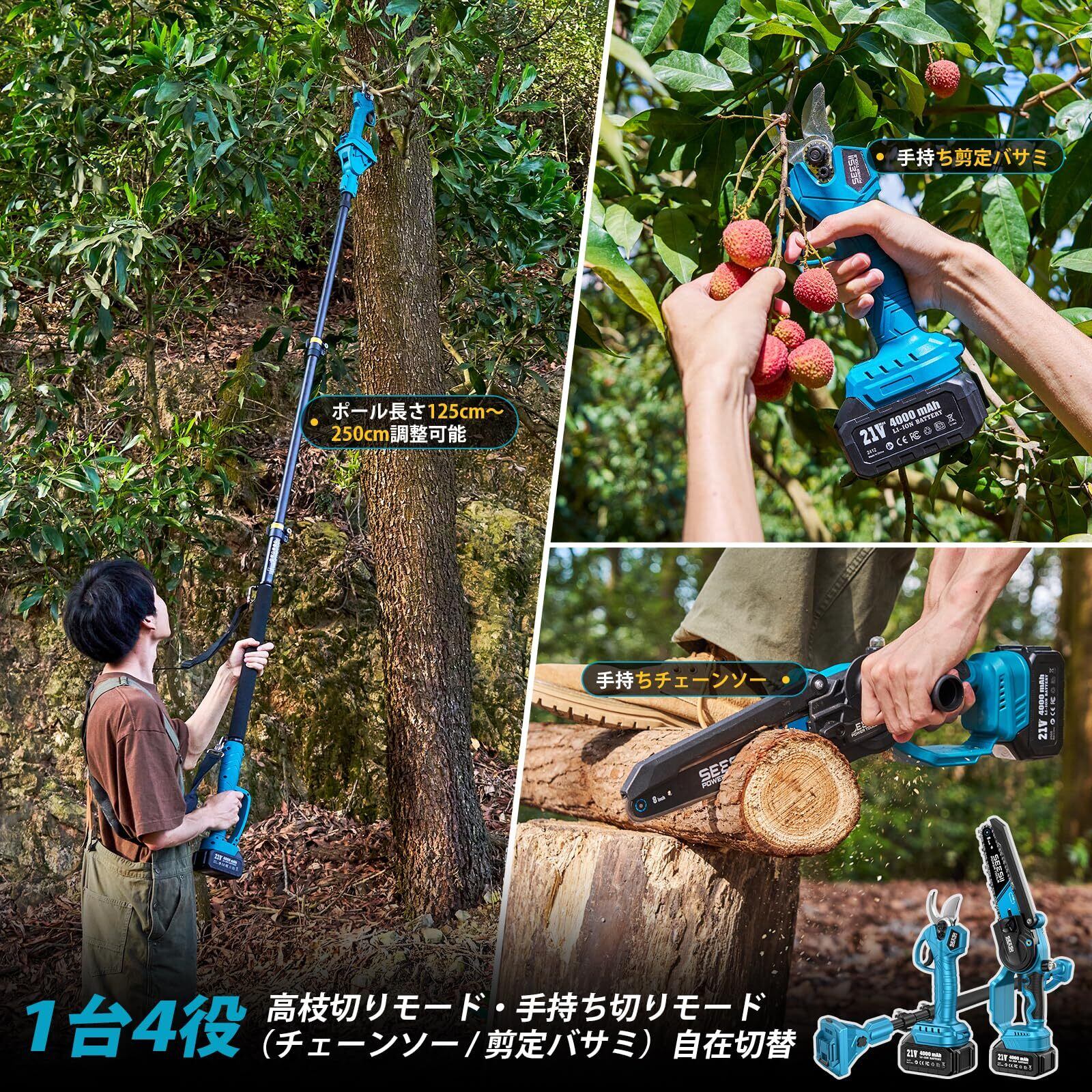 【新春セール】【2025年新登場】SEESII 高枝チェーンソー&電動バサミ 8インチ コードレス充電式チェーンソー 高枝剪定用 1台4役 軽量ブラシレスモーター搭載 自動給油機能付き 伸縮ポール(125cm〜250cm無段階調整) 強力剪定・伐採用 4.0Ah大容量バッテリー2個付き | ニコニコSHOP