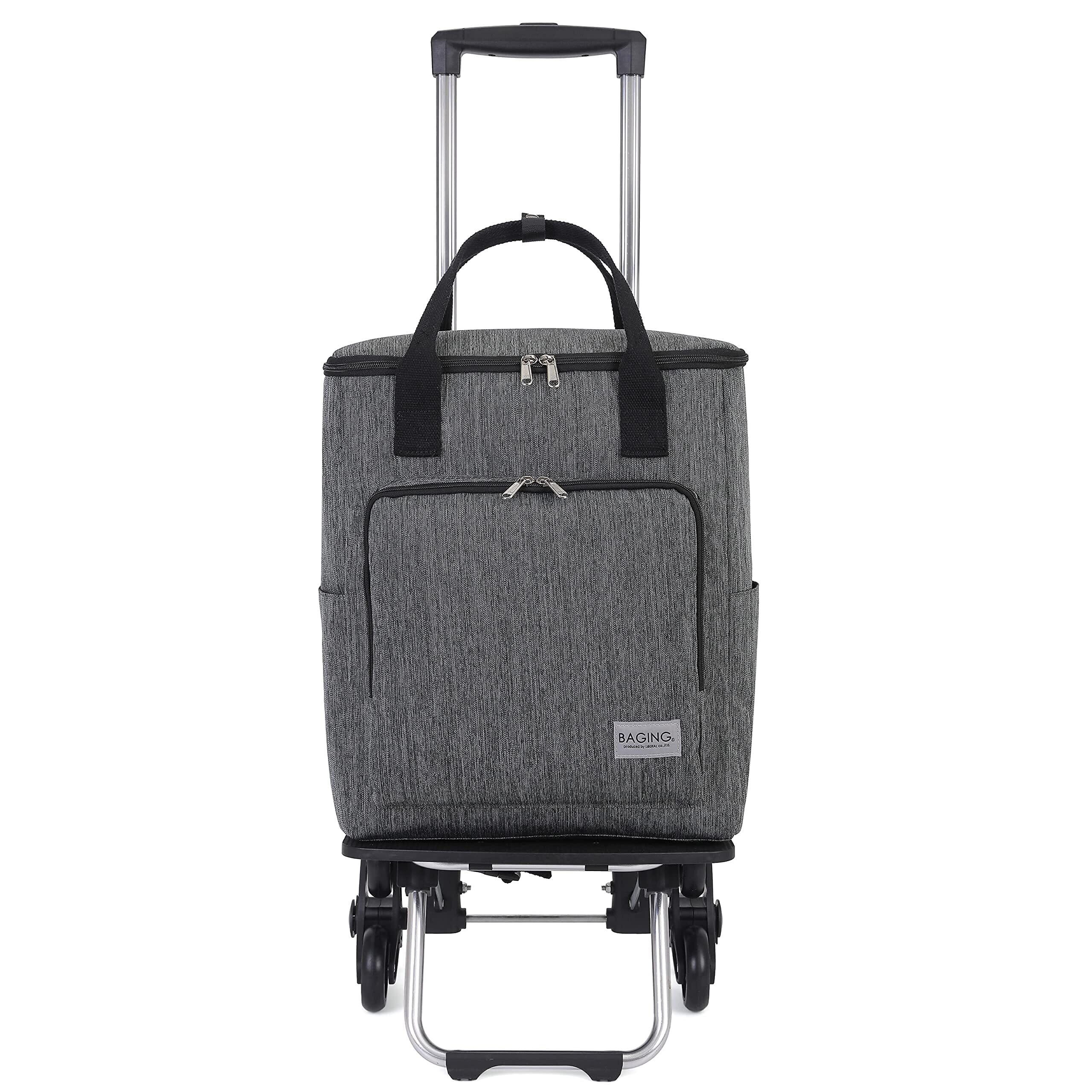 [BAGING バギング]5段階調整可能 階段も引いて上がれる 保温保冷 ショッピングキャリー 6輪静音キャスター 折りたたみ 買い物カート 909 (ブラックヘアライン)