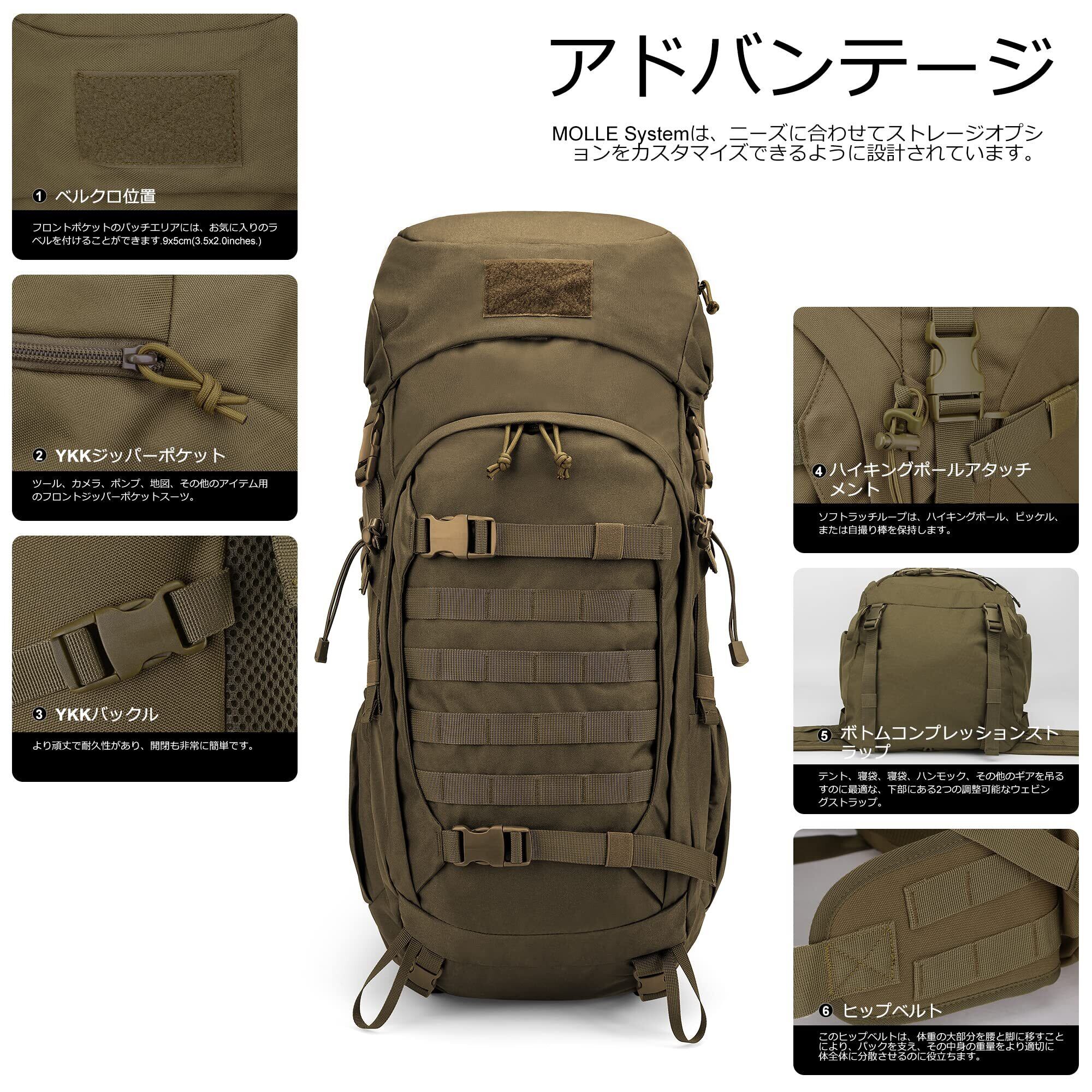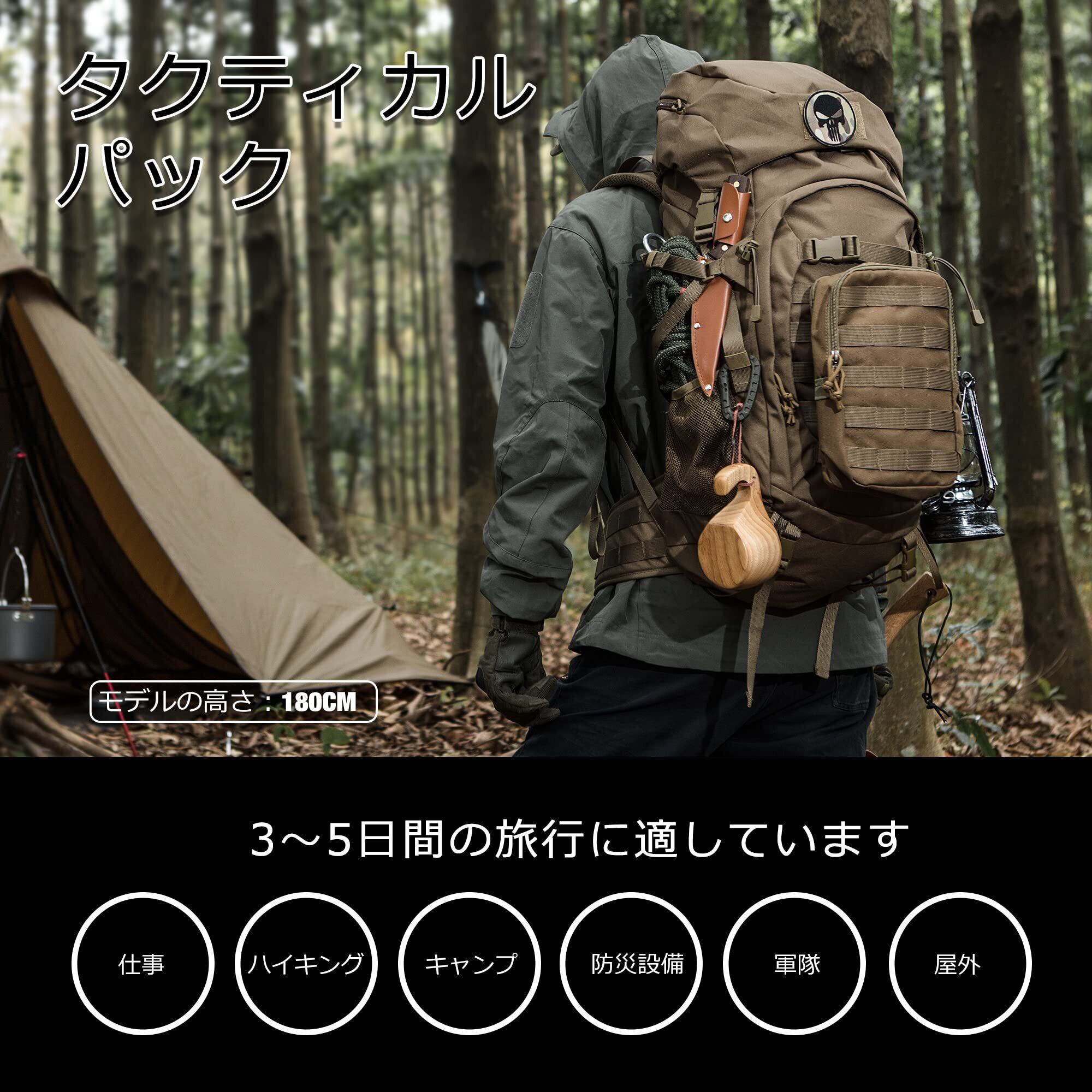 [Mardingtop] 50L バックパック 大容量 登山 リュック タクティカル パック ミリタリー リュックサック 軍用 キャンプ トレッキング 旅行 防災 レインカバー付き