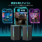【色鮮やかなRGBライト】ステレオスピーカーには、合計13種類のRGBライトモードが備わっており、かつタッチ式のRGBライトコントロールで自由自在に変換でき、テーブルショーを個性化を実現し、ゲームや音楽鑑賞にもより一層楽しめます。