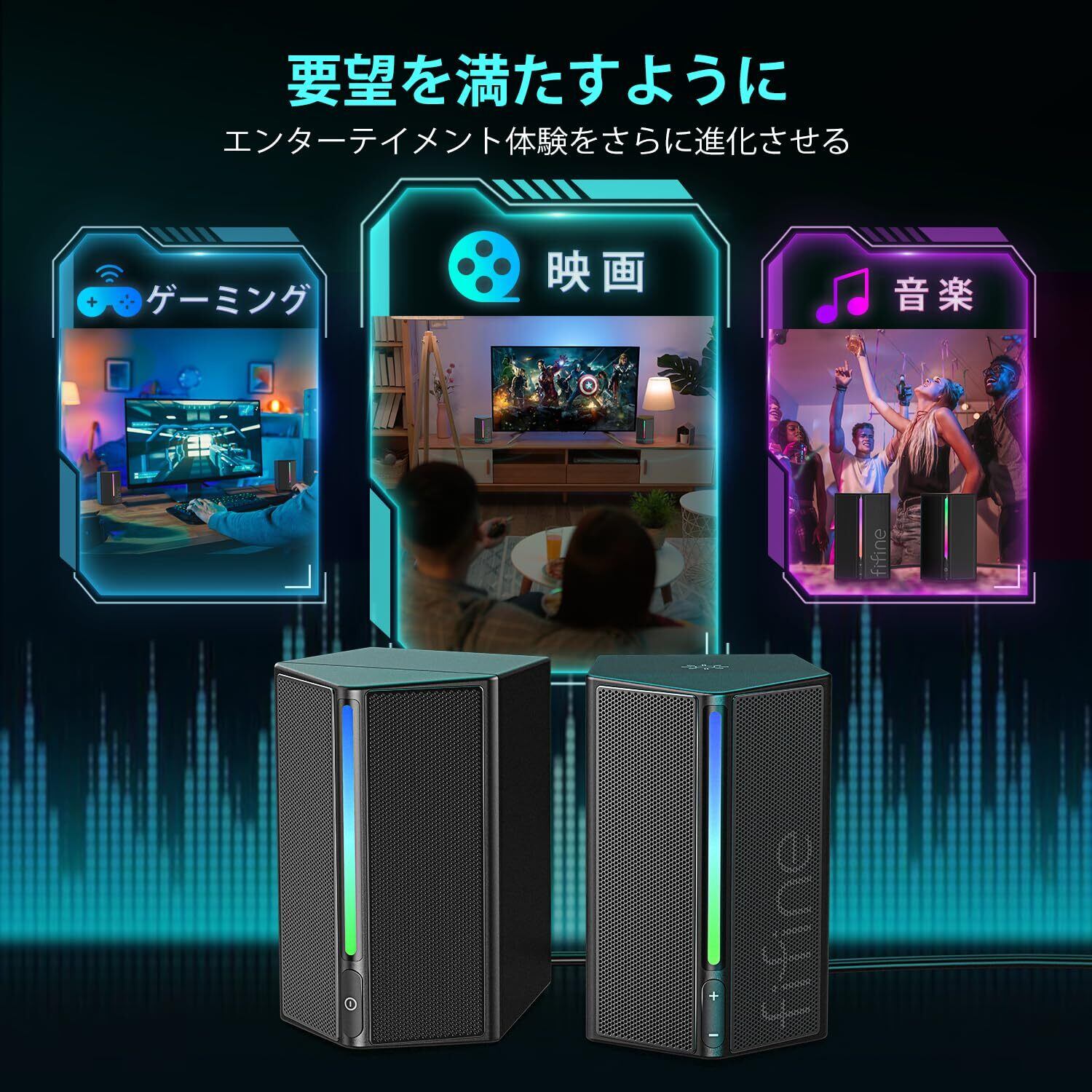 FIFINE ゲーミングスピーカー 有線 3.5mm接続 ステレオスピーカー 重低音 RGBライト制御可能 USB給電 PC/スマホ/テレビに対応 ゲーム/音楽/映画鑑賞 ブラック AmpliGame A20