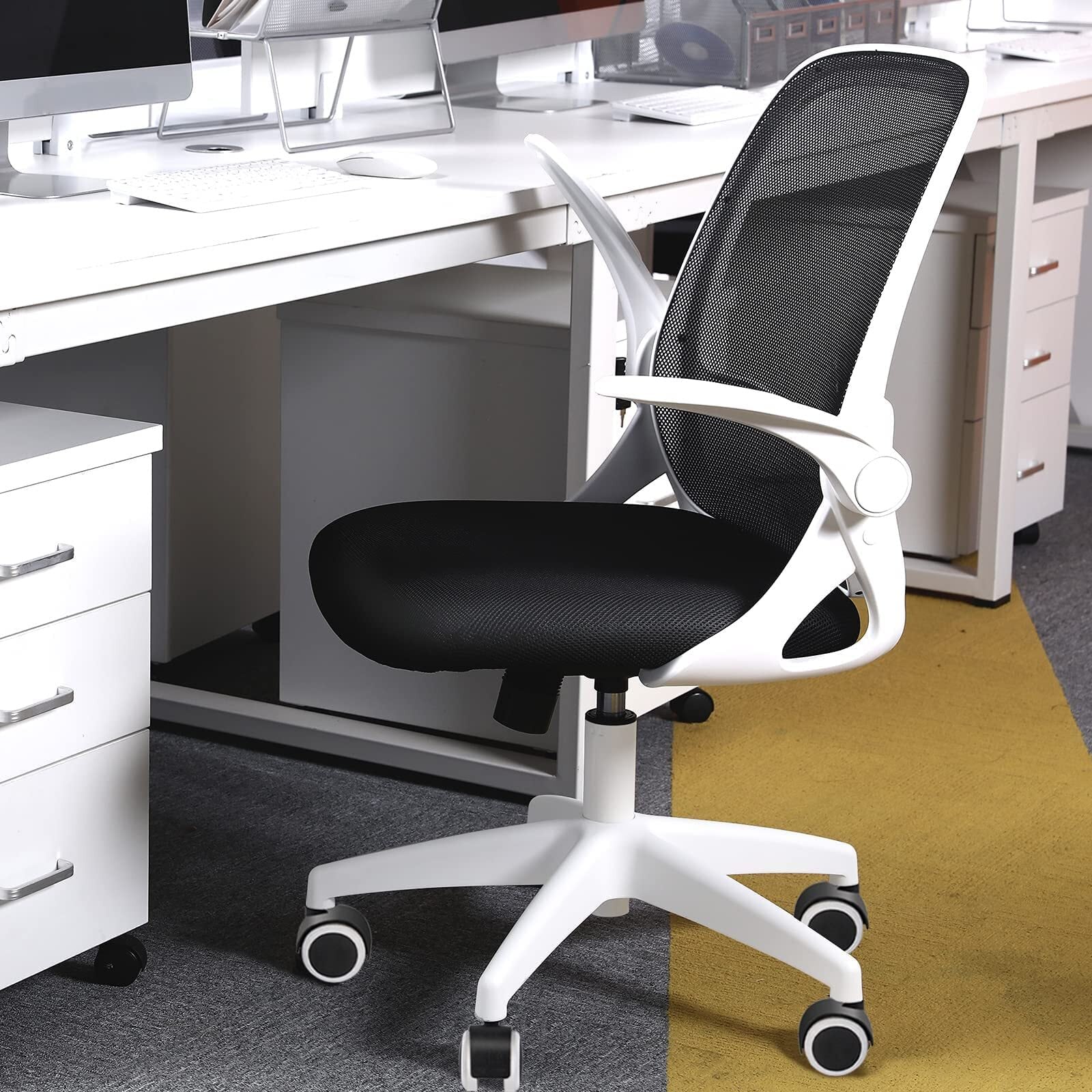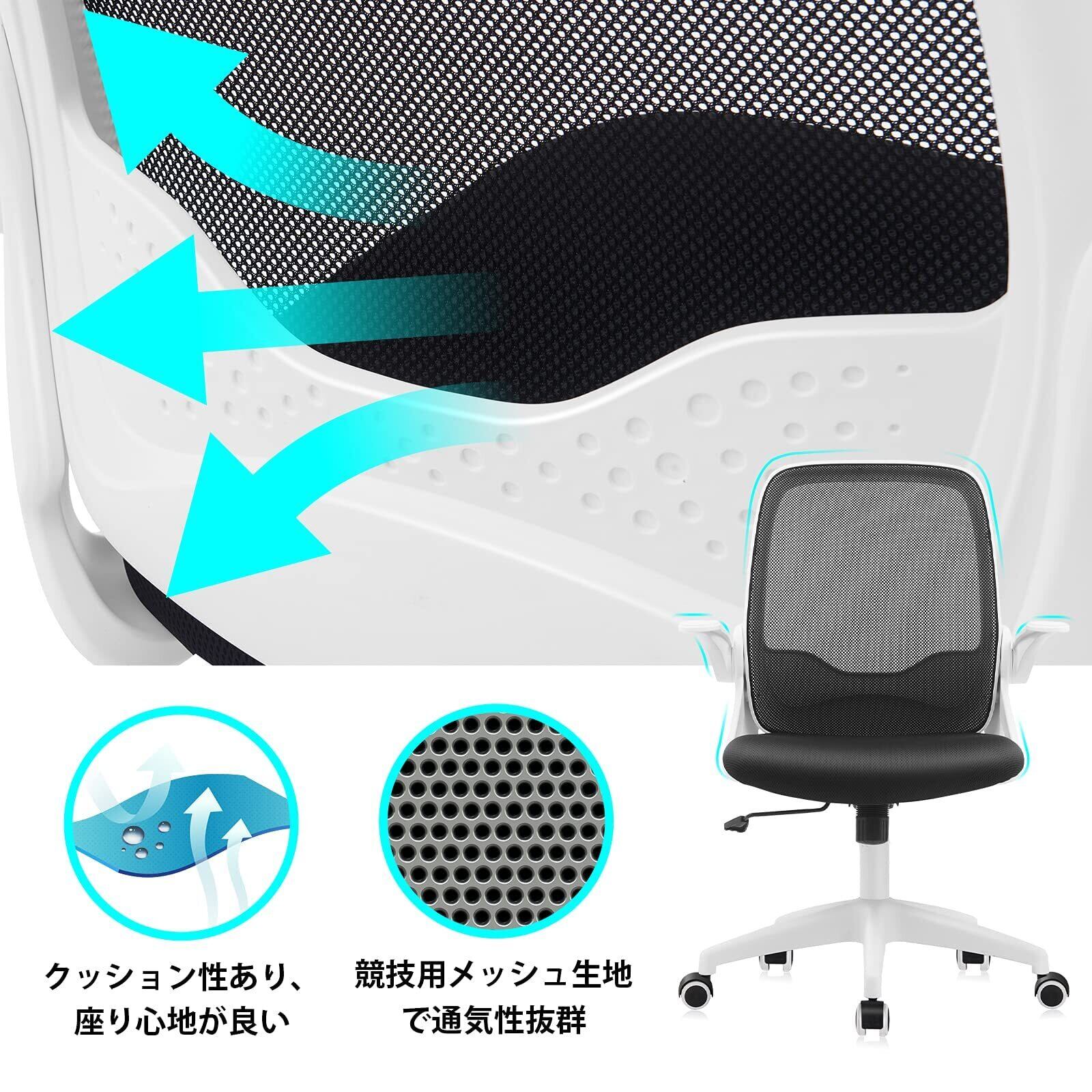 【在庫処分】KERDOM メッシュ椅子 テレワーク オフィスチェア 跳ね上げ式アームレスト 疲れない デスクチェア 椅子 パソコン ワークチェア デスクチェア おしゃれ 勉強 学習 ホワイト KD933-White | ニコニコSHOP