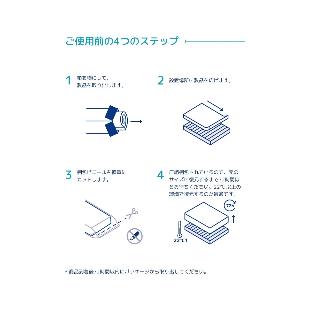 収納と持ち運びしやすい3つ折りタイプ:折りたたむだけで収納できます。コンパクトに収納できるので、限られたスペースを有効活用できます。ベッドの下やクローゼットの中など、狭い場所にもすっぽり収まります。自立するZ型形状で、湿気を逃がすことができます。柔らかな肌触りのポリジャガードニット生地はエコテックス規格をクリアし、通気性に優れているため日本の高温多湿の気候でも気持ちよく使用できます。カバーは取り外して洗濯機で洗えるので、清潔にお使いいただけます。