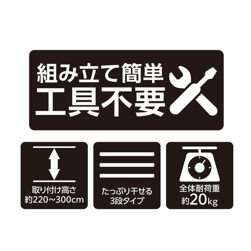 ベストコ ベランダ 突っ張り 物干し ステンレス 取り付け 幅9×奥行44~78×高さ220~300cm 3段タイプ ライトグレー NY-282