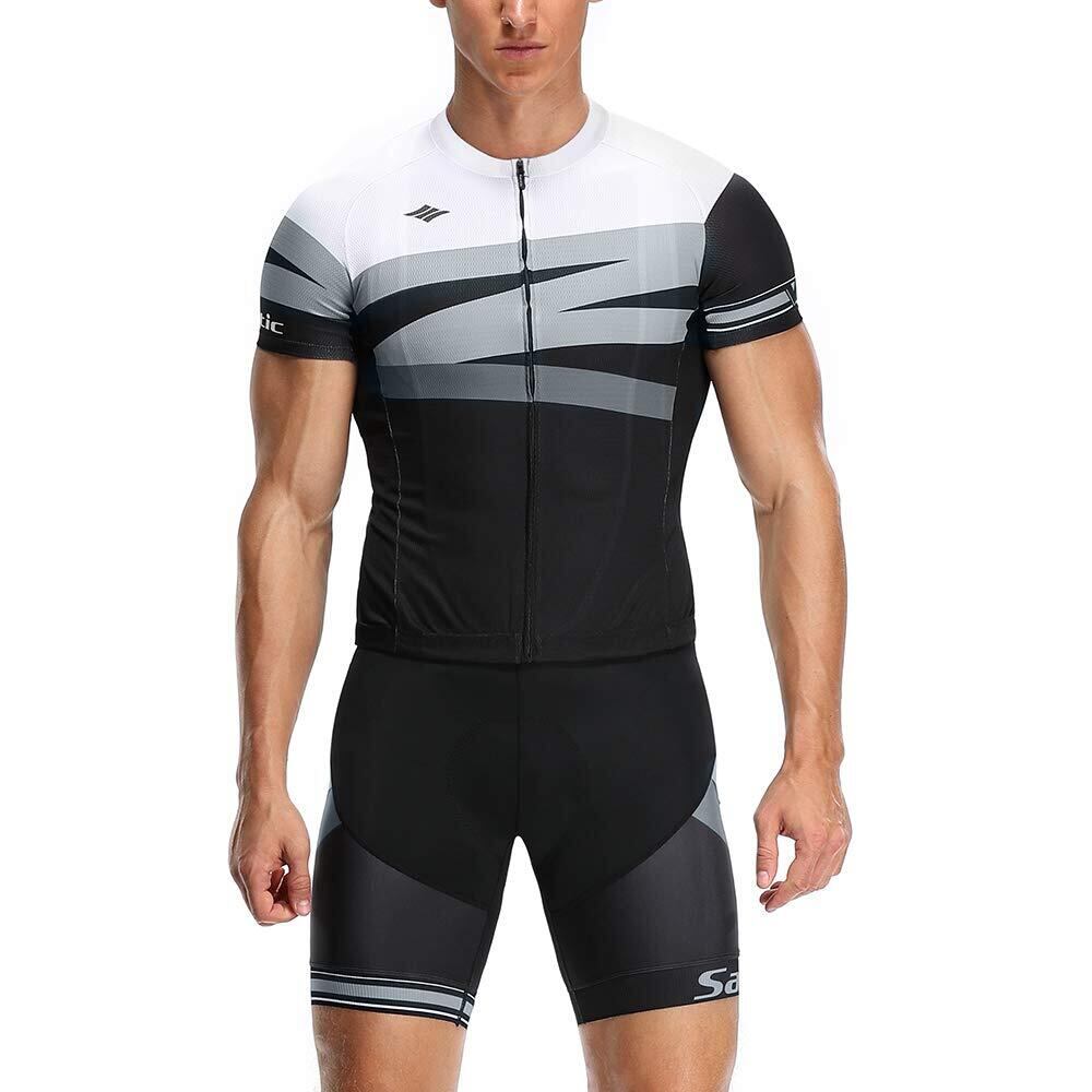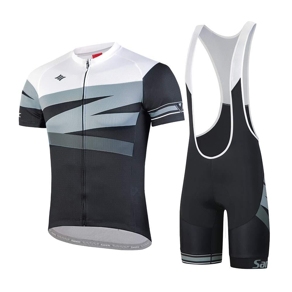 [サンティック] メンズ サイクルジャージ 上下セット 半袖 サイクルウェア サイクリング ジャージセット ビグパンツ 自転車ウェア 4Dパッド ロードバイク 夏 吸汗速乾 通気 弾力