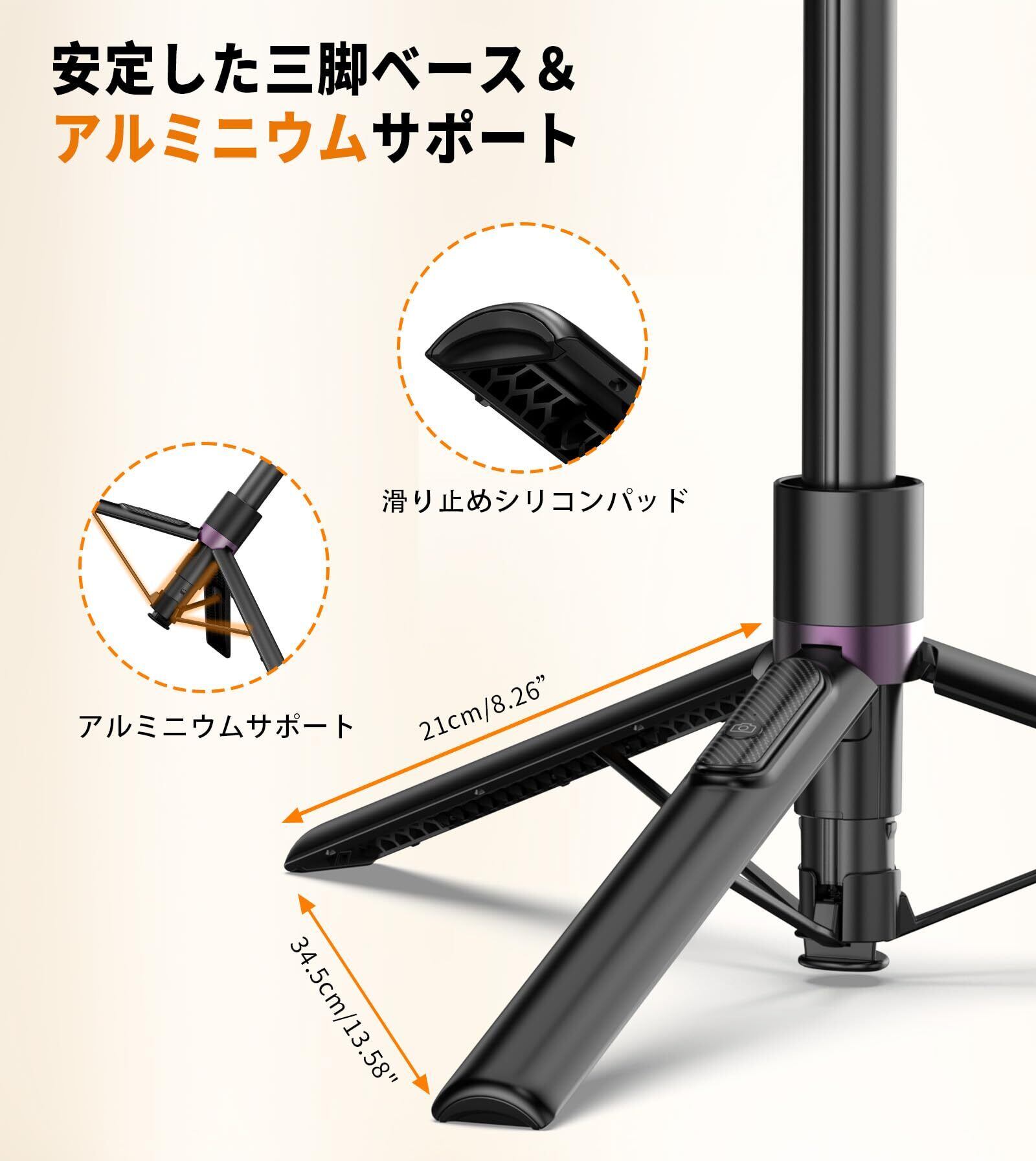 安定感抜群:磁気 スマホ 三脚は、高品質なアルミ合金で作られた磁気式スマホ固定リング、伸縮ロッド、底部支柱を採用し、耐久性がありながらも軽量で持ち運びに便利です。三脚ベースは伞型フレーム構造を採用し、脚部にはシリコン製の滑り止めパッドが付いており、どんな場所でも確実に安定して撮影でき、より鮮明な写真が撮影できます。