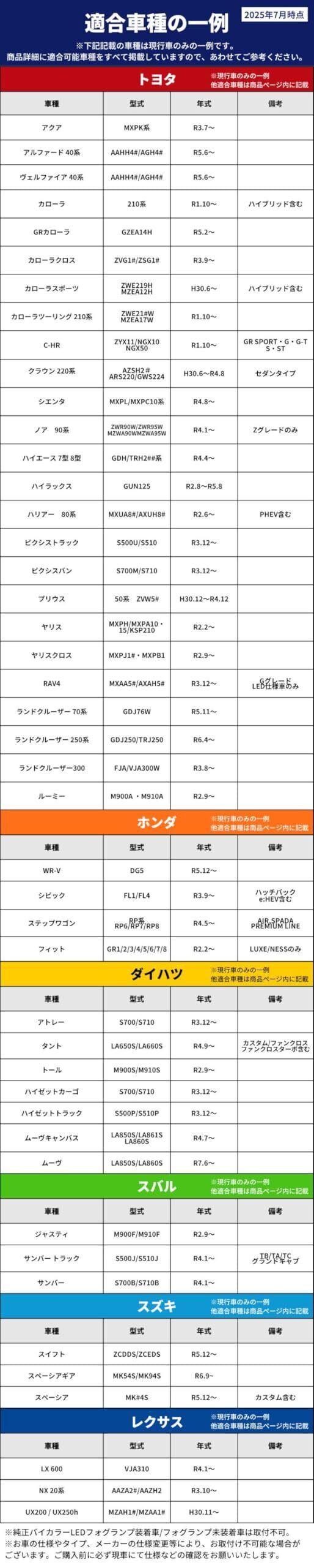 【取付不可車両】24V車/輸入車/純正フォグランプユニット未装着車/純正バイカラーLEDフォグランプ装着車※車種・グレードによっては取付できません。必ず適合表をご確認ください。特に下記の車種では購入間違いが増えておりますので、ご購入前に今一度ご確認をお願いいたします。 【ノア 90系】S-Z/S-Gグレード:フォグユニット タイプB / Zグレード:L1Bバルブ 【RAV4 50系】アドベンチャーグレード:フォグユニット タイプB / アドベンチャーグレード以外:L1Bバルブ