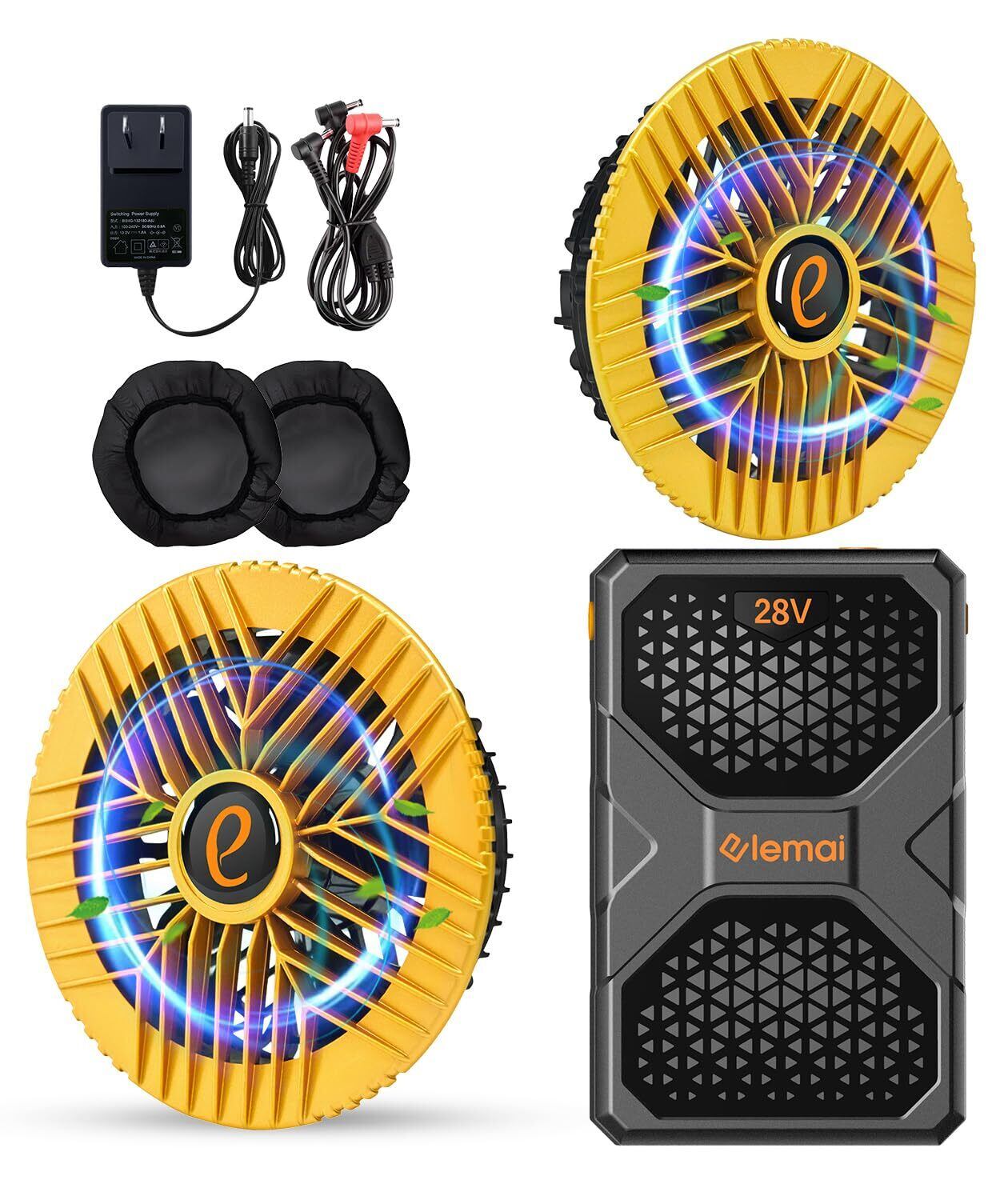 [elemai] フアン付き作業服対応 30000mAh 業界超高電圧出力28Vファンバッテリー セット 猛暑対策 ファン防塵カバー付き 2024年モデル 多色バリエーション