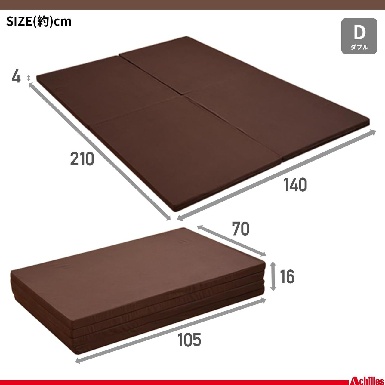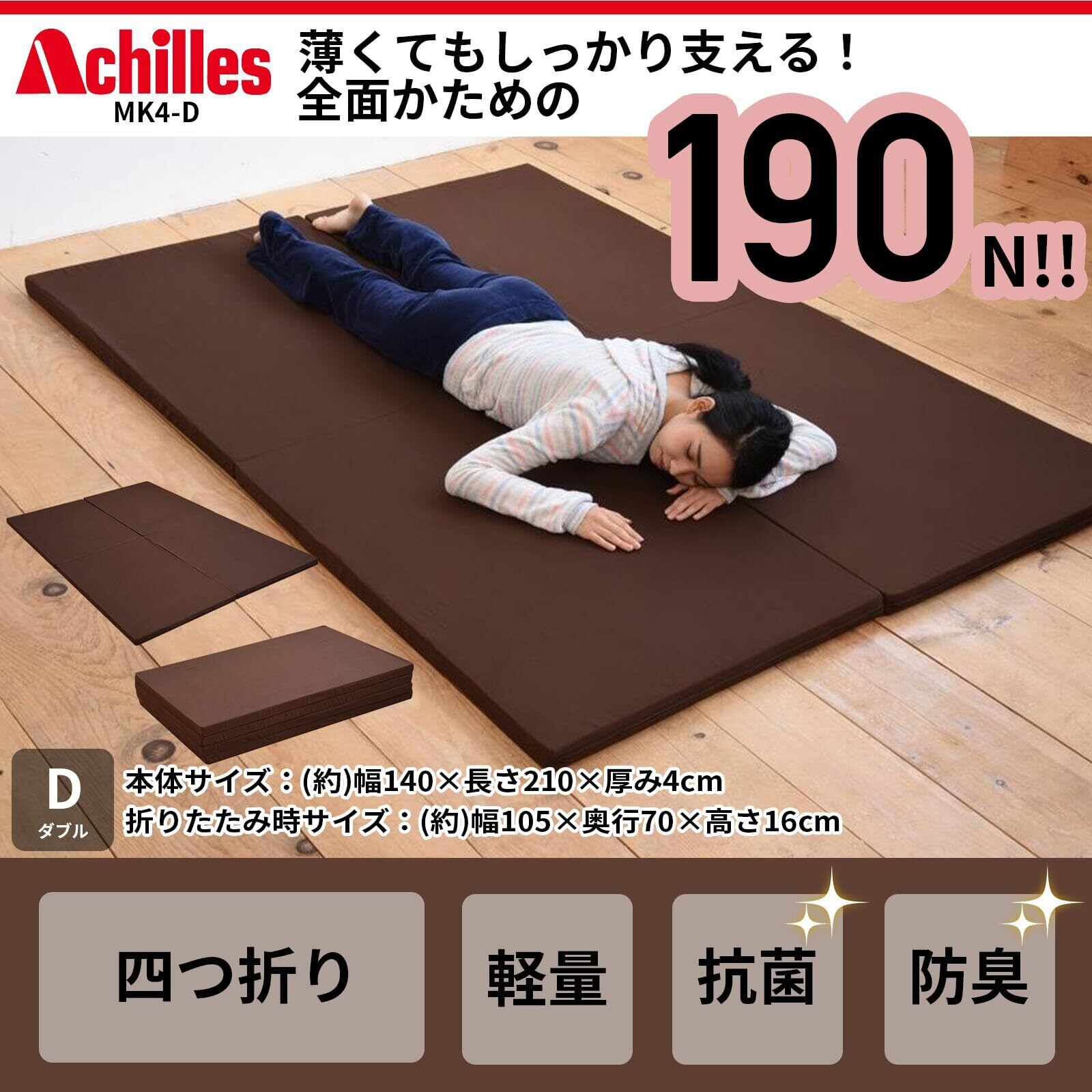 [アキレス] マットレス 折りたたみ 硬め 高硬度(190N) 腰痛 ダブル 抗菌 消臭 厚み4㎝ 車中泊 災害 ごろ寝 四つ折り コンパクト ブラック MK4-D(BK)