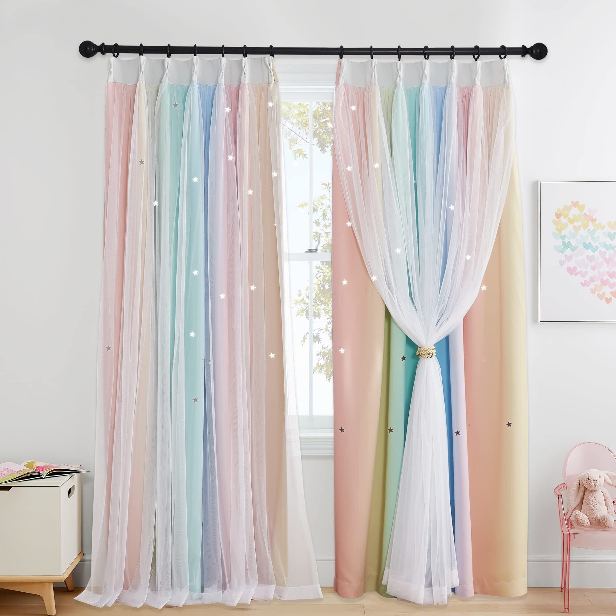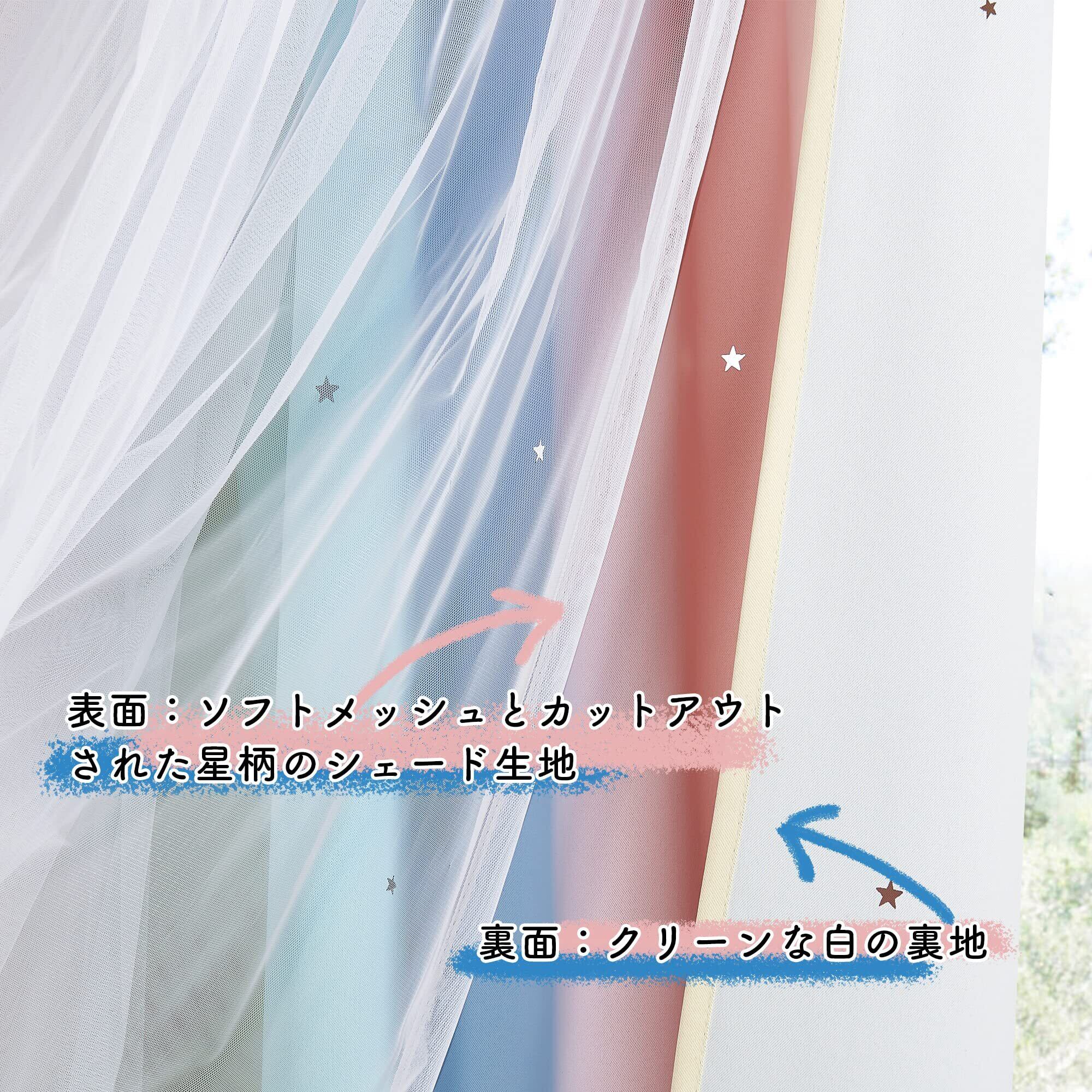 【在庫処分】PONY DANCE 透かし彫り 姫糸 遮光カーテン 星柄 あたたかでやさしい グラデーション 白いレースカーテン付き 可愛い 省エネ 弥生の色 ロマンティック 子ども部屋 目隠し 防音 2枚セット 100x110cm | ニコニコSHOP
