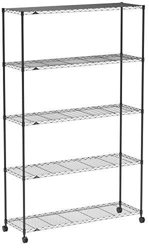 【在庫セール】ドウシシャ ルミナス ノワール ラック 5段 幅110 奥行40 キャスター付き スチールラック 黒 ブラック 収納棚 おしゃれ キッチンラック サビに強い 組立簡単 幅111×奥行41×高178.5cm ポール径25mm 耐荷重80kg NO1118-5 | ニコニコSHOP