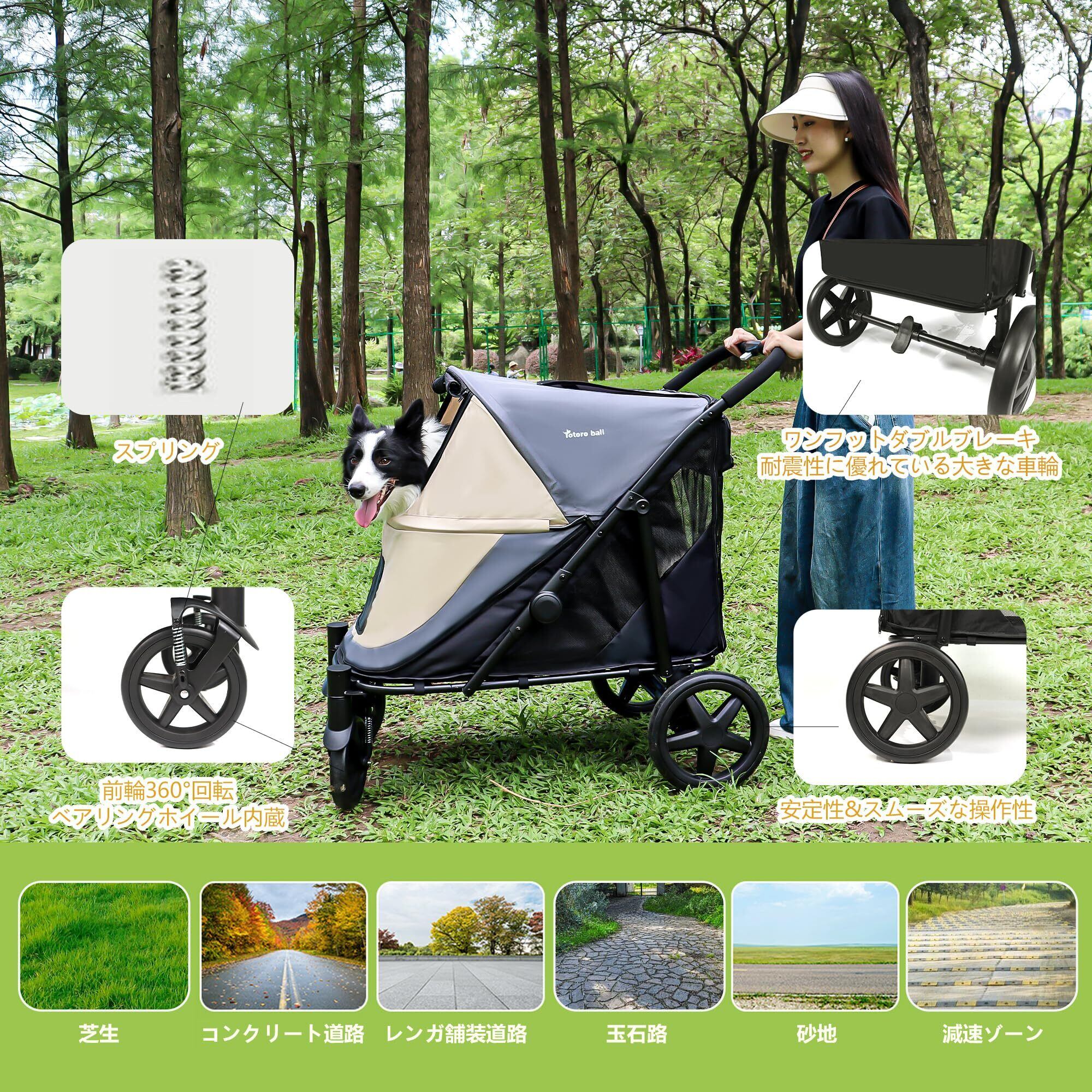 【在庫セール】Totoro ball ペットカート大型犬 用カート 犬 バギー 多頭 大型犬 ペットバギー 4輪 ワンタッチ折りたたみ式 軽量コンパクト 組み立て簡単 外出便利 大型・中型・多匹飼い向け 耐荷重55Kg (グレー+ベージュ) | ニコニコSHOP