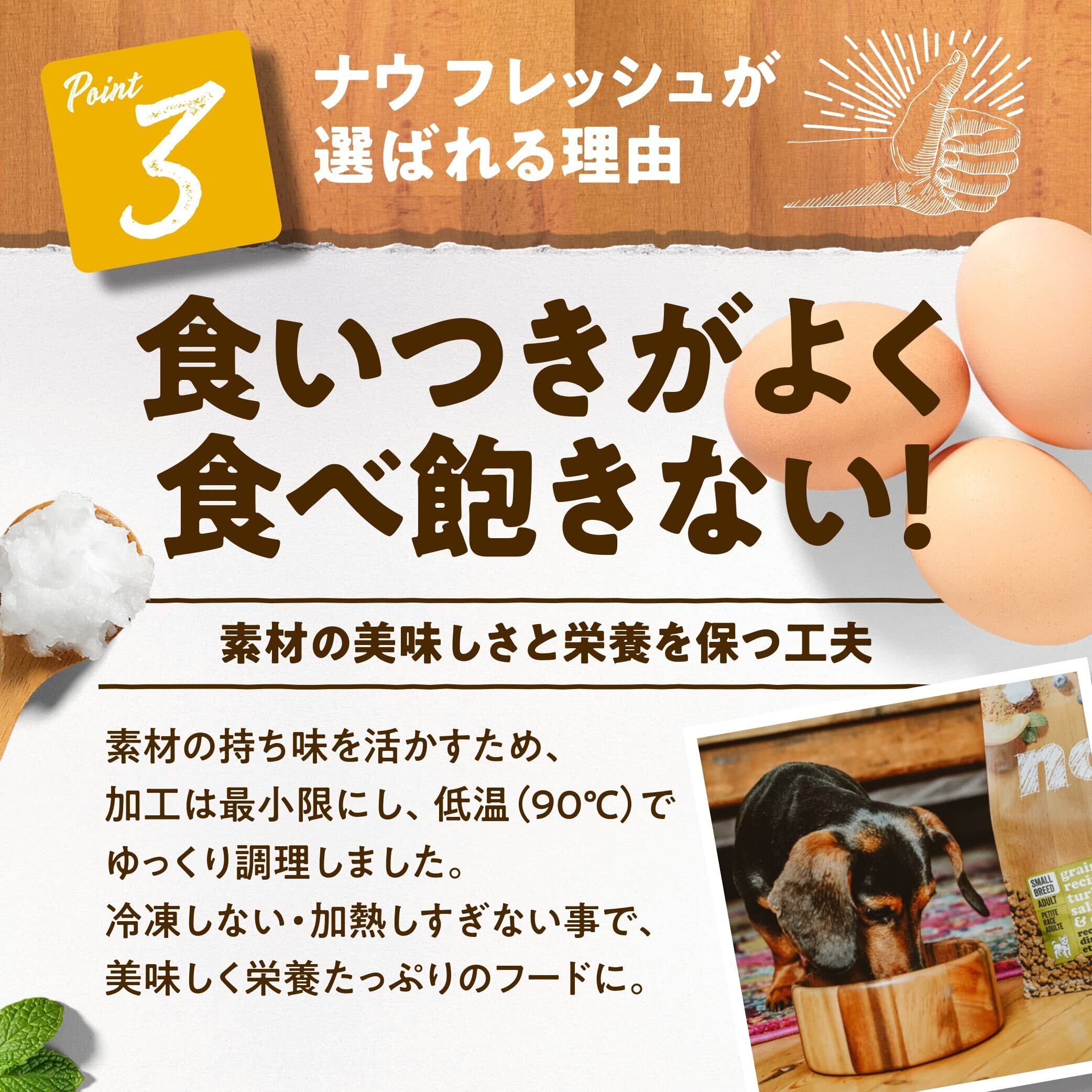 【新鮮という品質をお届け】ナウフレッシュは、家族の大切な一員である愛犬のために、トコトン新鮮にこだわったナチュラル×ミールフリーのプレミアムフードです。