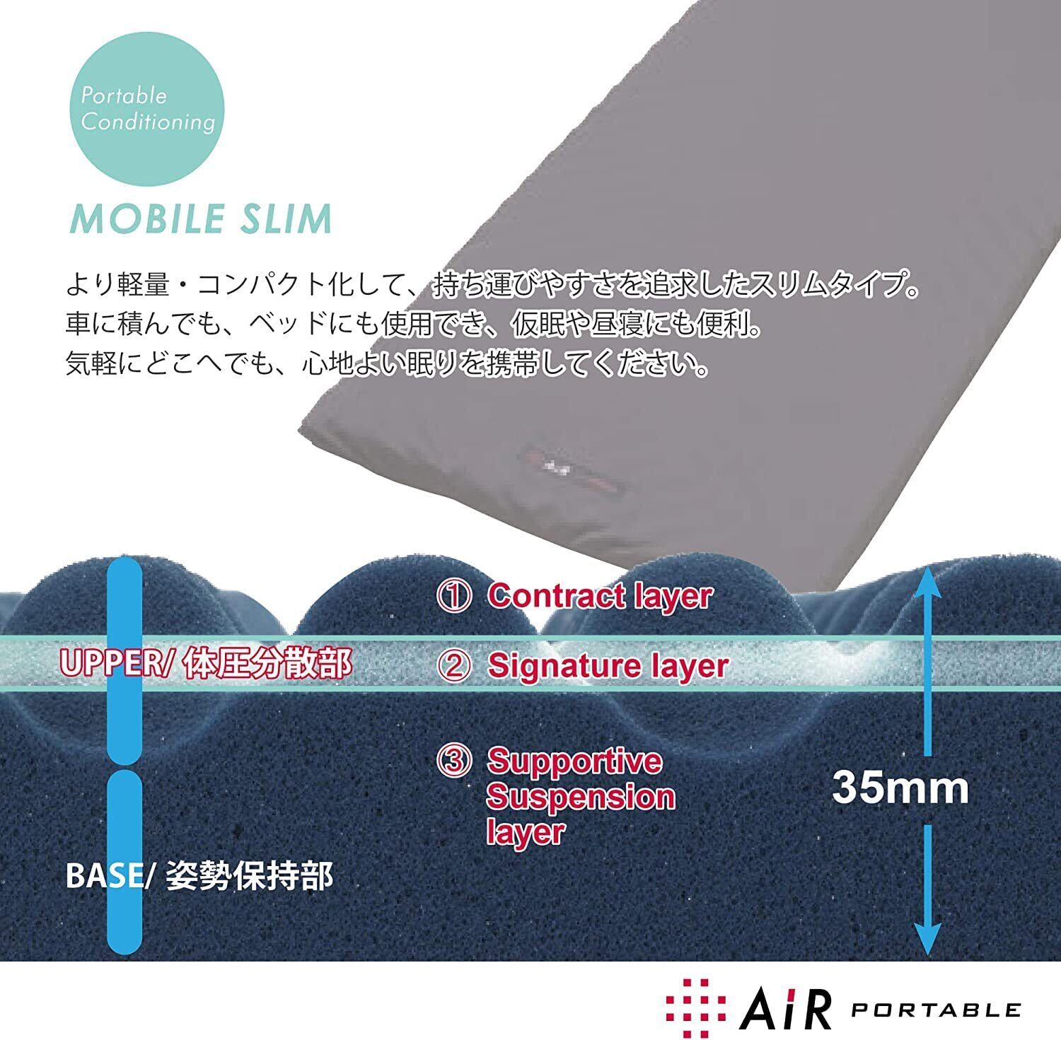 この1枚をプラスするだけで、[エアー]の機能性を発揮、快眠をサポートします。 軽量化、コンパクトにして、より持ち運びやすさを求めたスリムタイプ。
