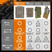 『ミリタリーショップ店長監修』本体のサイド部分をフラットにすることで、2個以上並べて取付けた場合に隣同士で干渉しにくくなります。リロードがよりスムーズになりました。