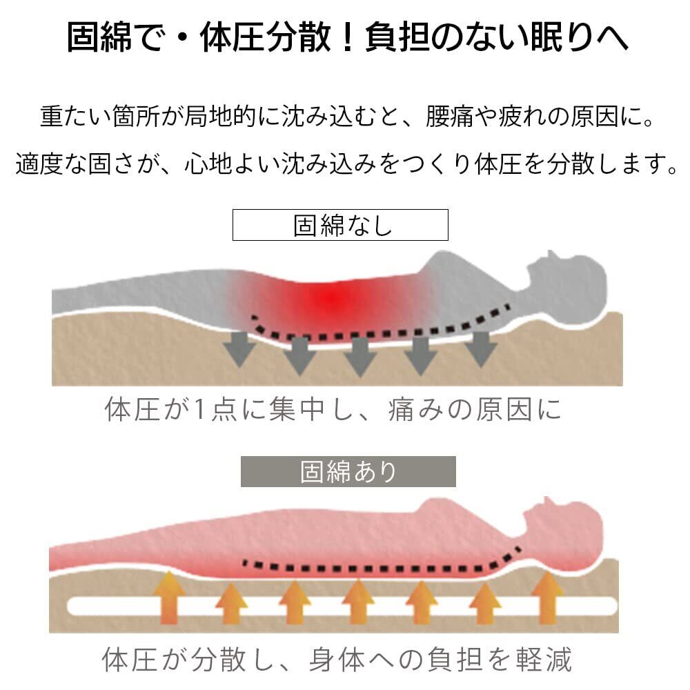 床付き軽減のため、敷布団の中心に厚さ3cmの固綿を使用し、横になったときの心地よい沈み感を実現。