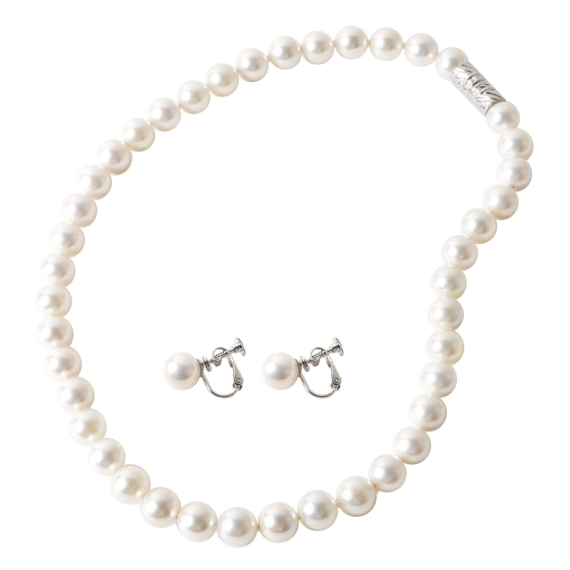 パールネックレス 真珠 8mm マグネット式 ネックレス (選べる ピアス イヤリング セット)