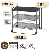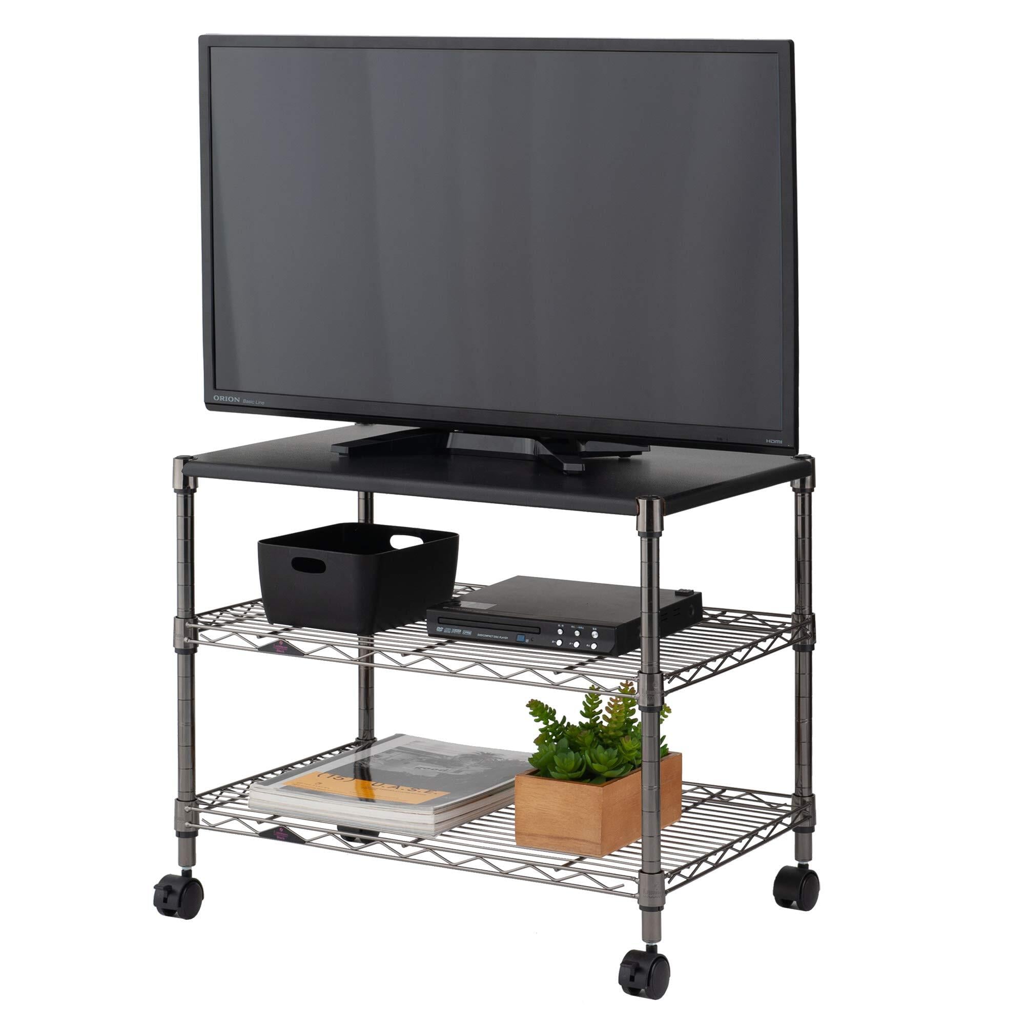 【在庫セール】ドウシシャ ルミナス ブラック 幅60 3段 テレビ台 テレビラック ローボード 艶のある黒色 キャスター付き スチールラック 収納棚 棚板 スチール天板 シェルフ 幅59.5×奥行39.5×高さ51cm 耐荷重240kg ポール径19mm BN5160-3M | ニコニコSHOP