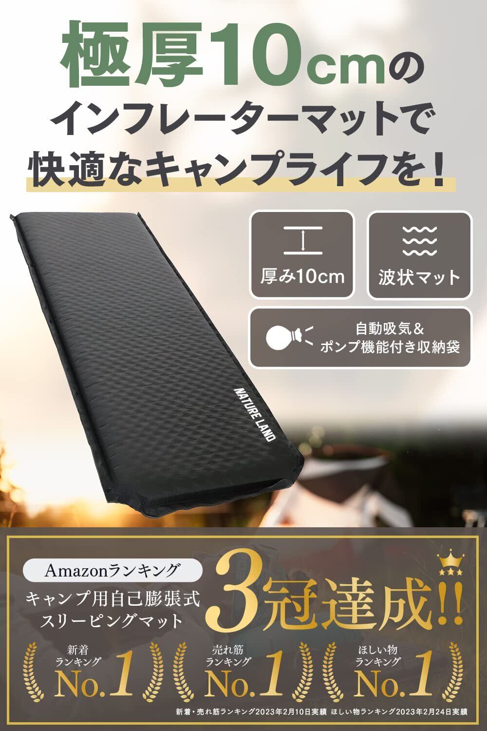 【キャンプインストラクター推薦】NATURE LAND キャンプ マット 極厚 10cm インフレーターマット エアーマット ポンプ機能付き 防災 防災グッズ