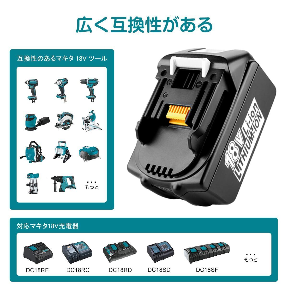 【互換 マキタバッテリー18V】マキタ バッテリーBL1830 BL1840 BL1850 BL1860 BL1890 BL1860B BL1430 BL1460 BL1430B BL1460B など。 充電方法は純正品と同じです。マキタ純正18Vバッテリーが対応できる機種であれば、この互換バッテリーも問題なく対応できます。