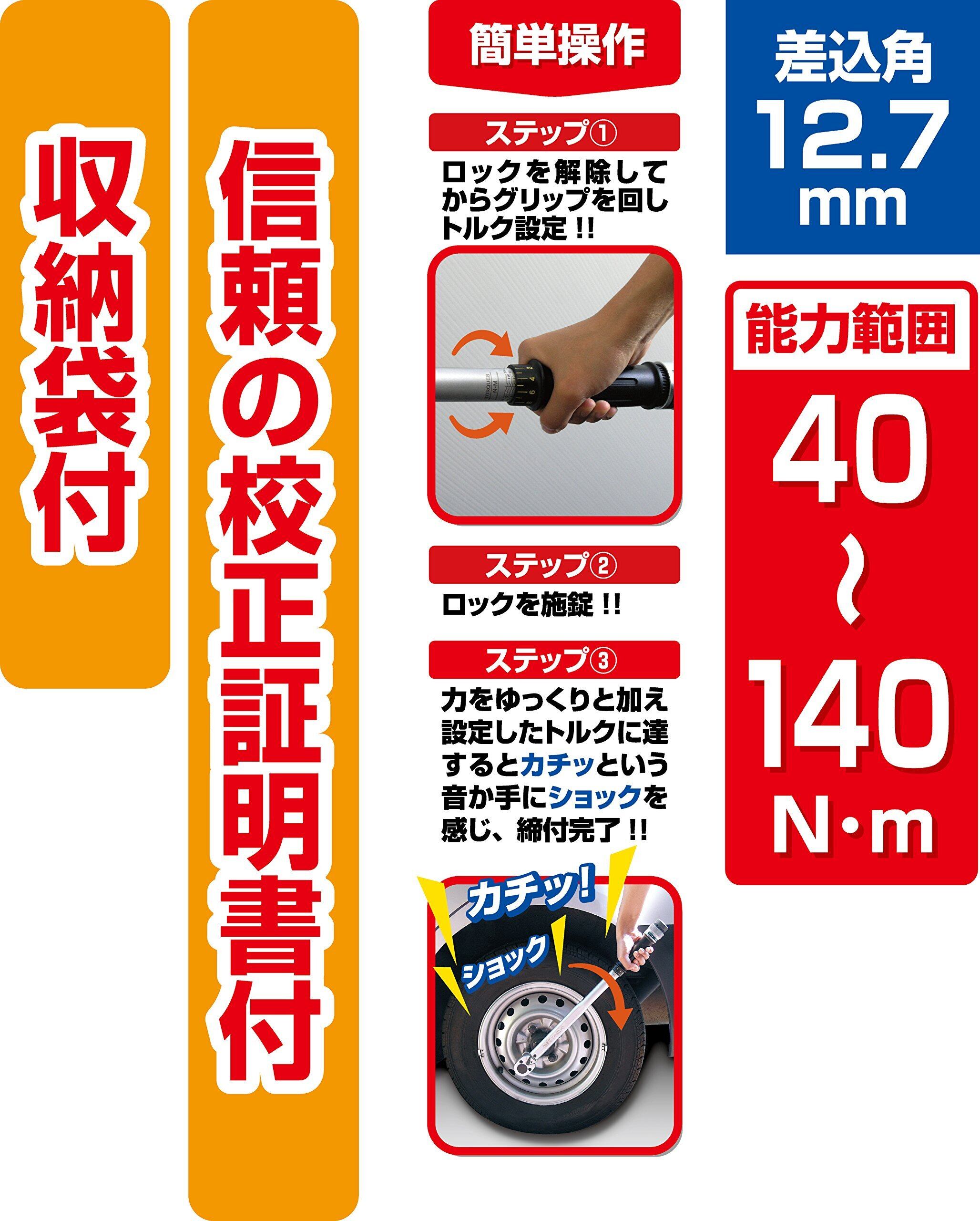 ●自動車ホイルナットのトルク管理(能力範囲 40~140N・m)に適した締付専用のトルクレンチです。●信頼の校正証明書付で安心して御使用頂けます。●力の入れやすい干渉しない最適な長さです。●ゴミ・ホコリ予防ゴムリング付きです。