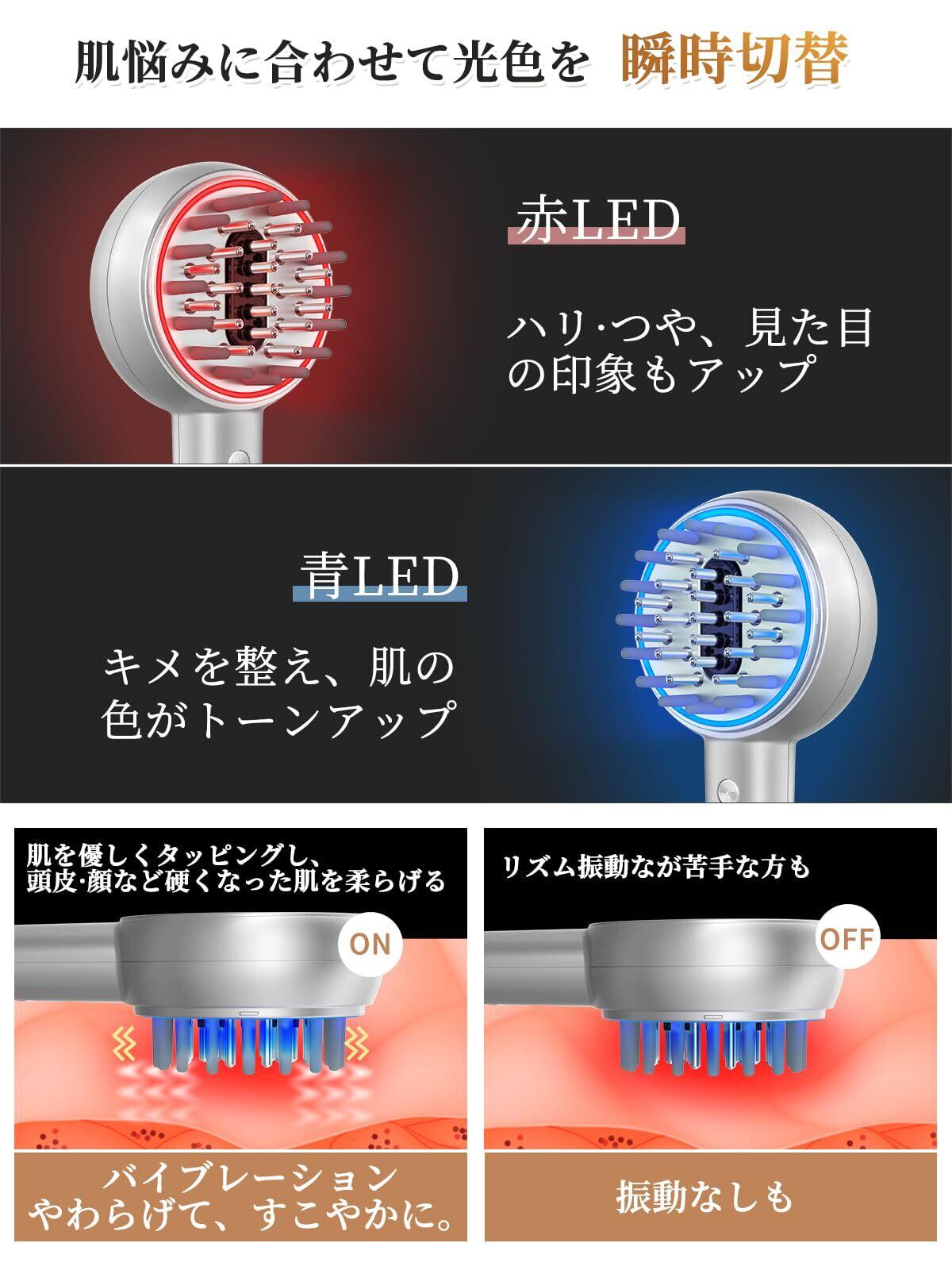 【本格的な光エステ】赤色LED:夜のスキンケア後に使用することで、肌のハリ感をアップ。青色LED:メイク前に使用することで、毛穴の目立ちをストップ。18000回/分の心地よい振動でやわらげて、すこやかに、いきいきとした健やかな頭皮へ!振動が自由に制御可能で、敏感肌や振動音に苦手な方などにも!