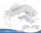 ODK パソコンデスク l字デスク ゲーミングデスク L字型 デスク 机 幅120cm ラック付き pcデスク desk 収納 オフィスデスク 在宅勤務 書斎 組立簡単 ホワイト