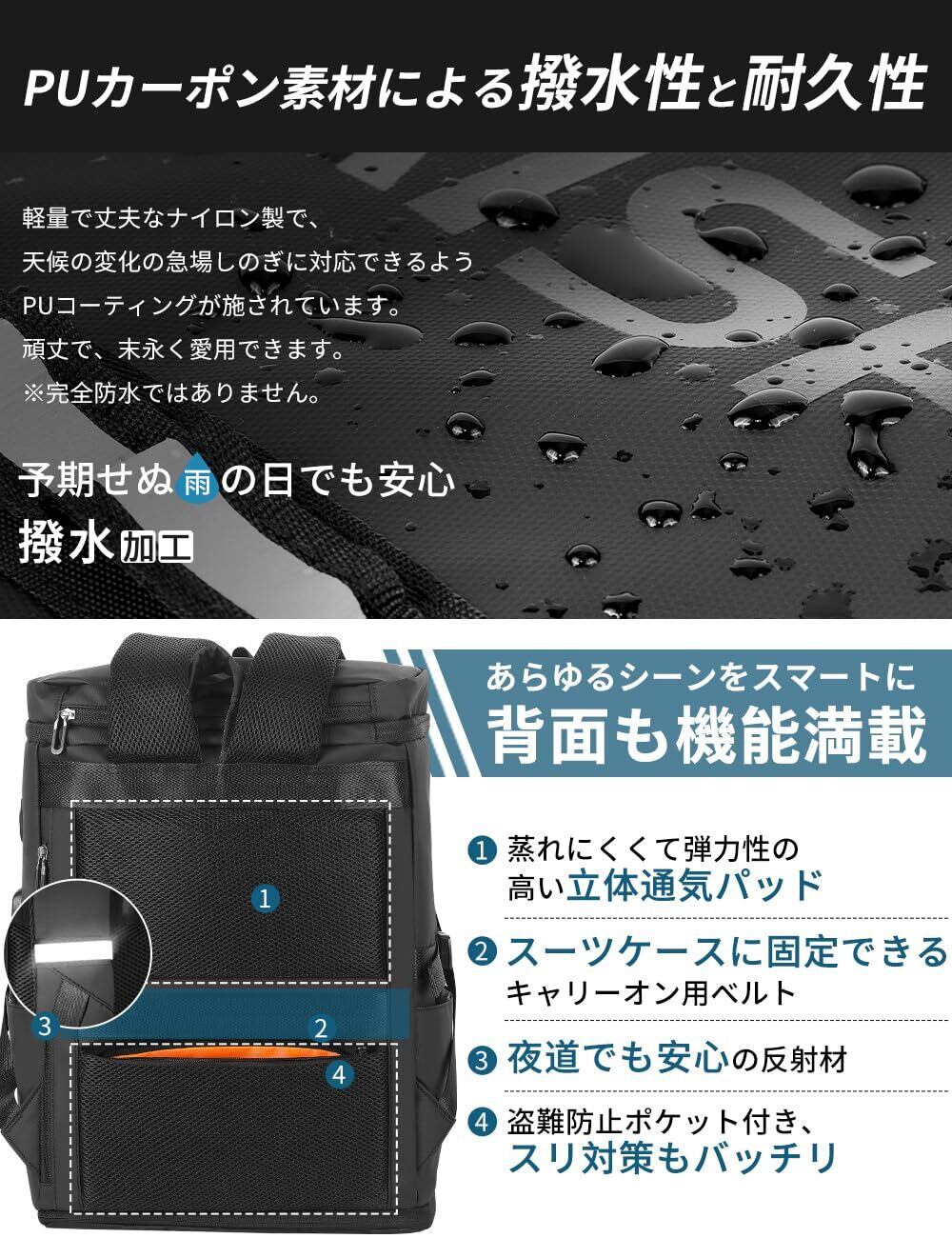 [AISFA] リュック メンズ リュックサック スクエア バックパック 17インチ PC ビジネス USB充電ポート付き 30L 大容量 アウトドア 旅行 通勤 通学 大学生 靴/弁当収納