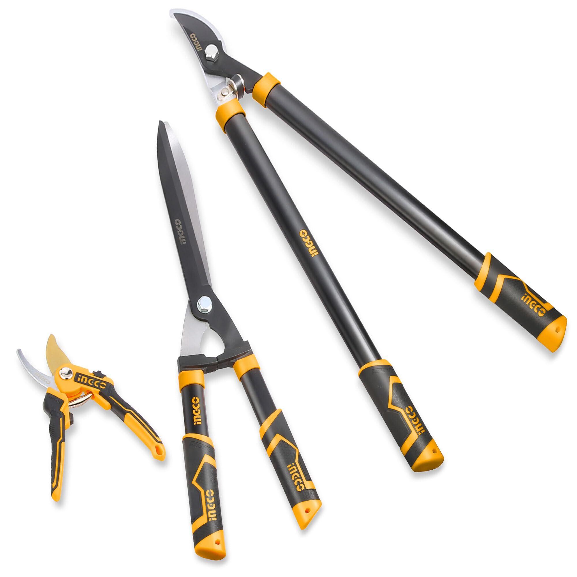 INGCO 園芸剪定鋏 3点組 220MM/8.5"剪定ばさみ 557mm/22"刈込鋏 725mm/29"高枝切りバサミ 果樹の剪定 庭の剪定 木の剪定 盆栽の剪定 HLT76033
