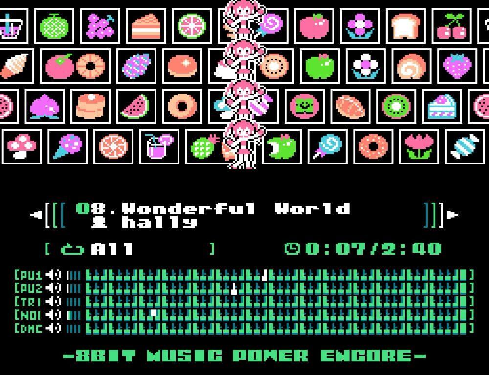 さらに、音楽以外の部分についても、より多彩になったキャラクターの動きや背景の描画など、楽曲をより心地よくご堪能頂けるよう、進化した画面演出の数々を搭載いたしました。ゲームカセットから再生される正真正銘の「8BITサウンド」の楽曲を、進化した画面演出と共に、心ゆくまでご堪能下さい。