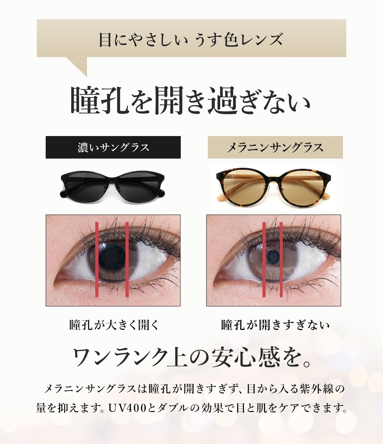 [eyeforyou] メラニンサングラス レディース UV400 特許取得メラニンレンズ UVカット ブルーライトカット サングラス メラニンライトブラウン
