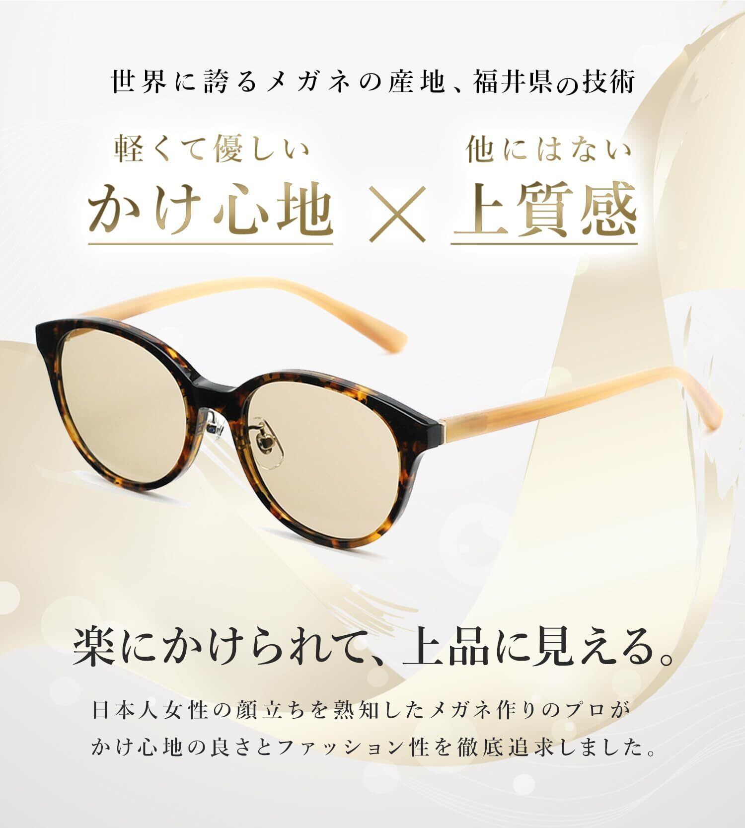 肌触りのやさしい天然素材アセテート製フレーム。鼻パッドはまつ毛がレンズにあたりにくい設計で快適にかけられます。レンズシェイプはお洒落なボストンタイプ