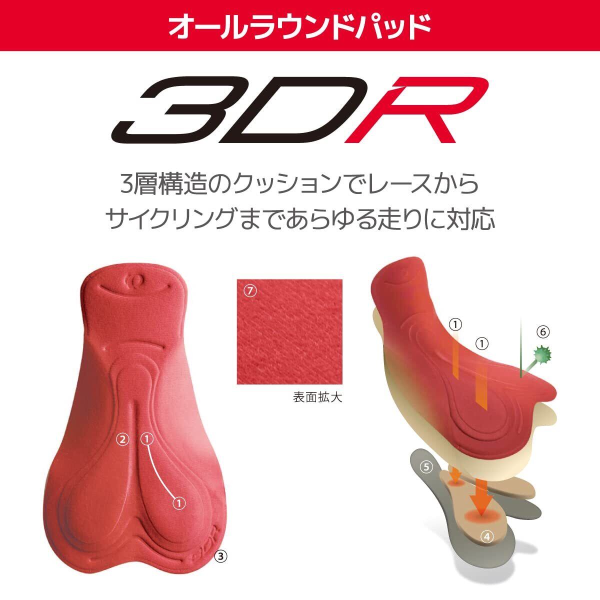素材にUVカット機能を持ち、太陽光を遮蔽して衣服内温度の上昇を抑える「コールドシェイド」を採用、吸汗速乾性とストレッチ性にも優れ快適なはき心地です。パッドには3層構造のクッション圧でオールラウンドに活躍するパッド「3D-アール」を装備し、裾には柔らかくフィットしてずり上がりにくいラッセルテープを採用した定番パンツです。
