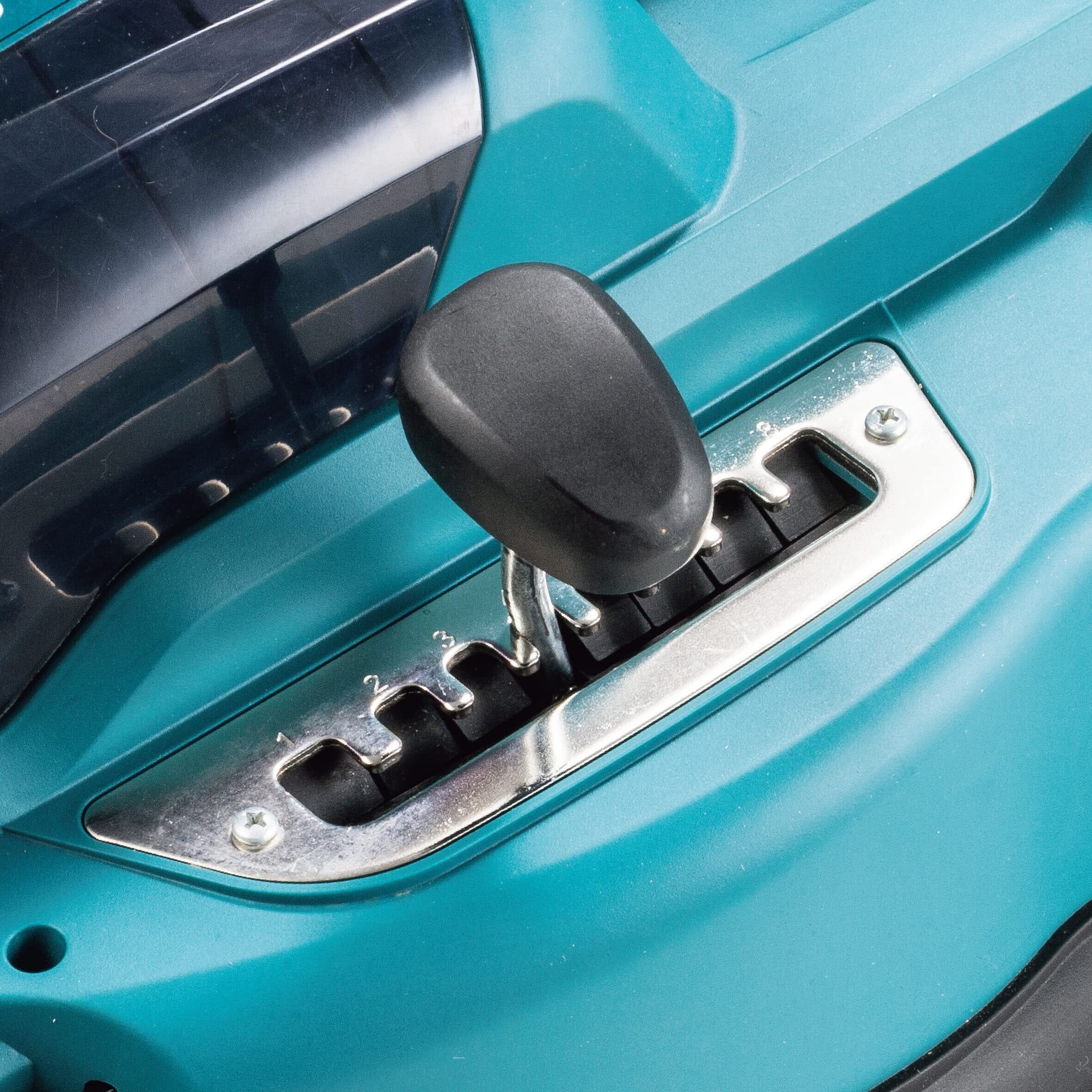 刈高調整がしやすい横長レバー形状。見やすい位置決め溝で刈高調整が簡単。約20~75mmの範囲で8段階に設定可能。