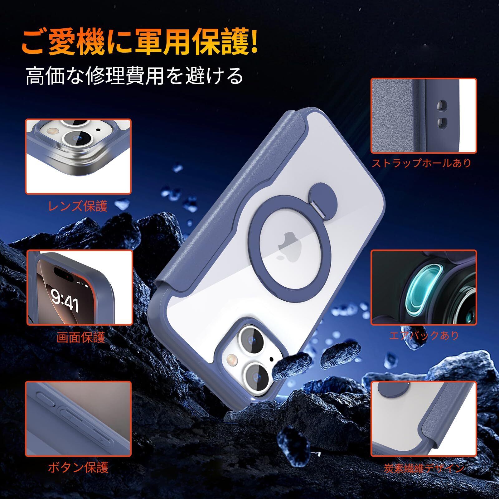 smhokesu iPhone 15 用 ケース 手帳型 360°回転スタンド【衝撃吸収・耐久性】カード収納 MagSafe対応 リング付き 縦横両対応 クリア仕様を引き継いだ手帳型 レザー素材 軽い 薄型 耐衝撃いphone15 スマホケース 全面保護 アイフォン15 携帯カバー マグセーフ対応 おしゃれ マットブルー