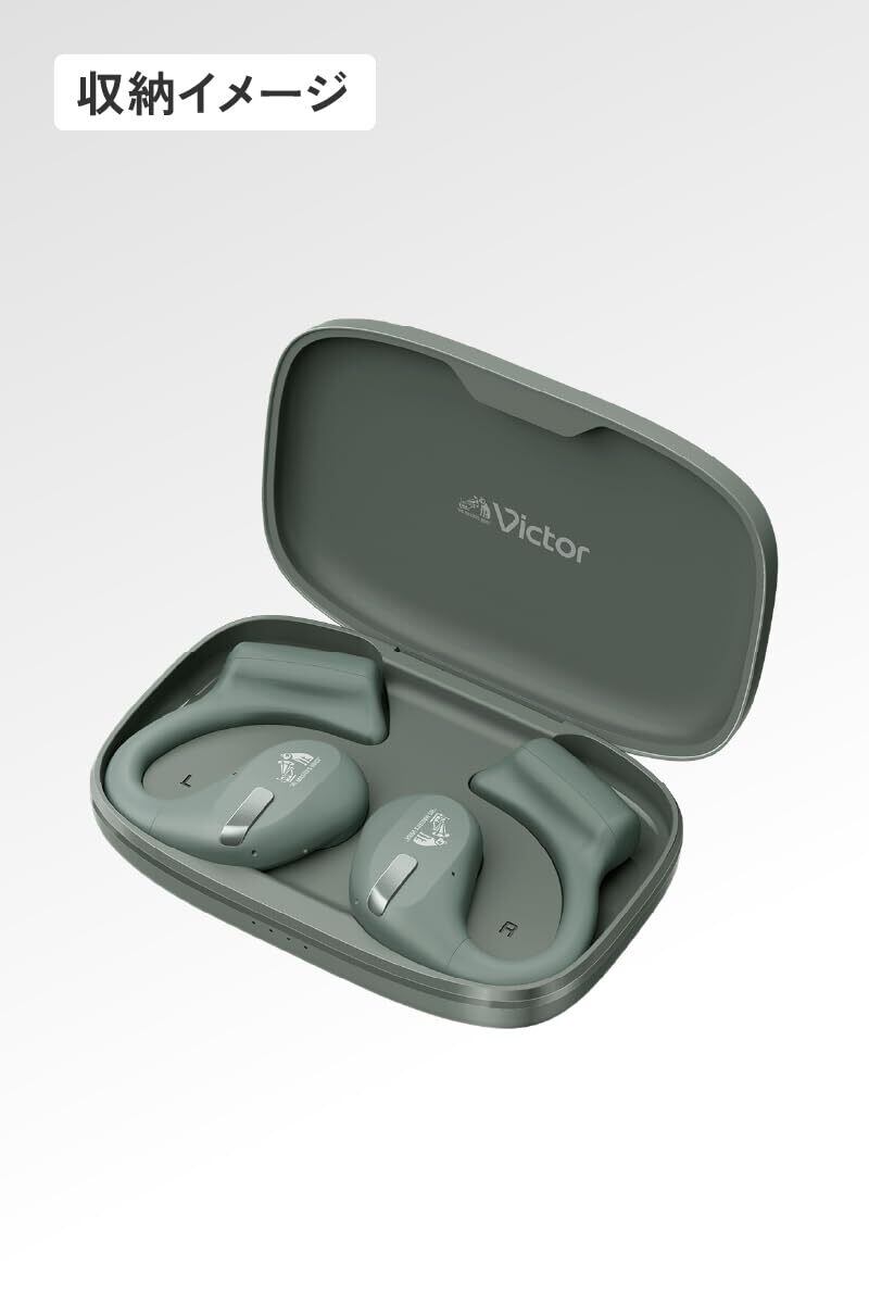 JVCケンウッド Victor HA-NP50T-GA ワイヤレスイヤホン Bluetooth オープンイヤー 耳をふさがない ながら聴き マルチポイント 耳掛け 最大38時間再生 マイク付き セージグリーン ステッカー付