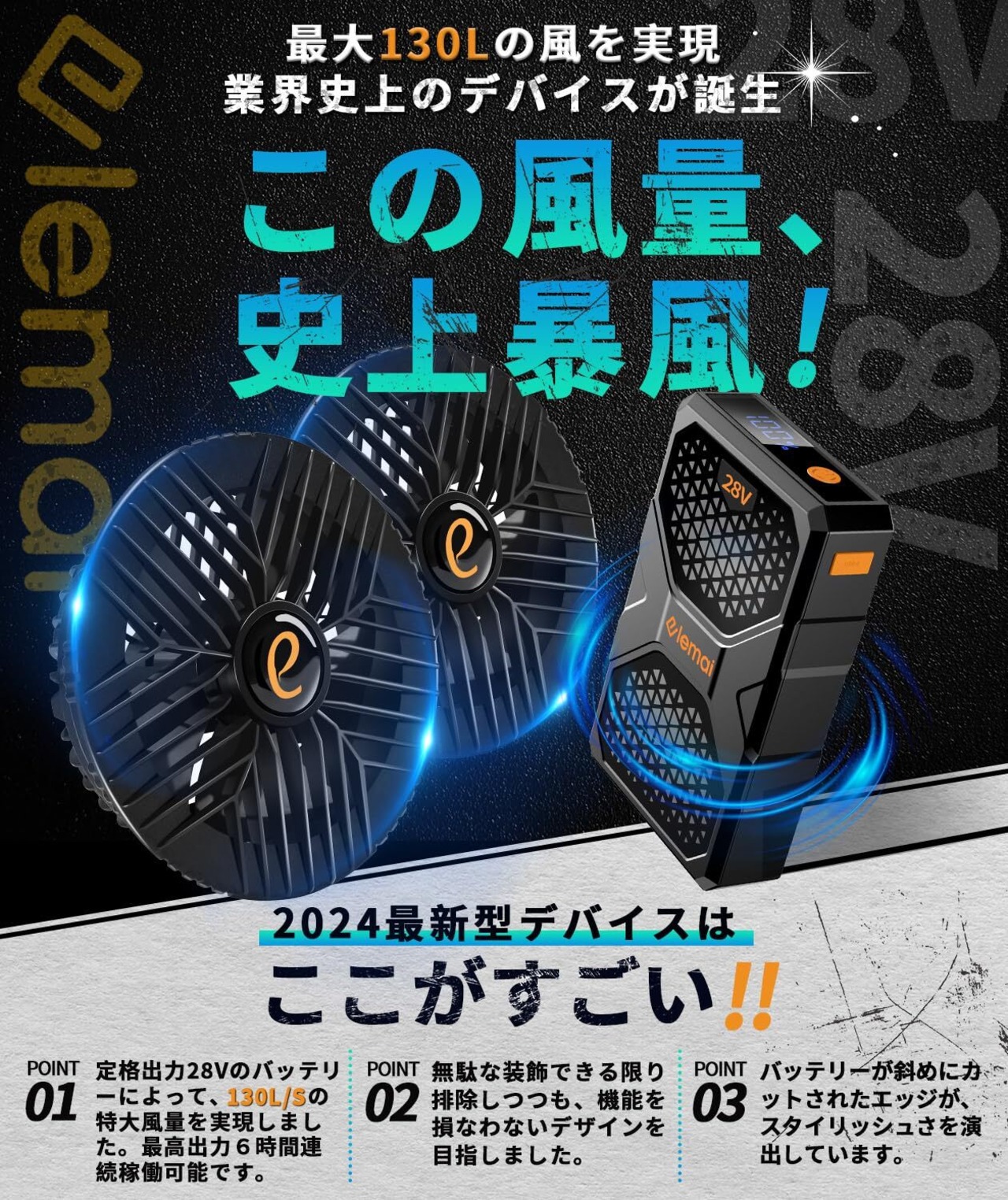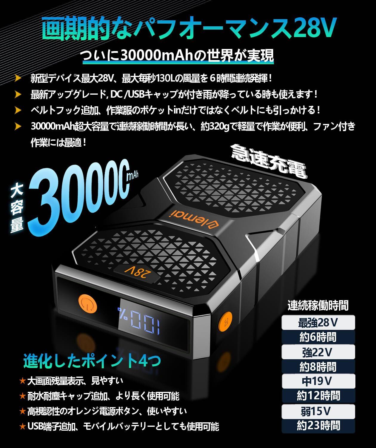 【人気商品】[elemai] フアン付き作業服対応 30000mAh 業界超高電圧出力28Vファンバッテリー セット 猛暑対策 ファン防塵カバー付き 2024年モデル 多色バリエーション | ニコニコSHOP
