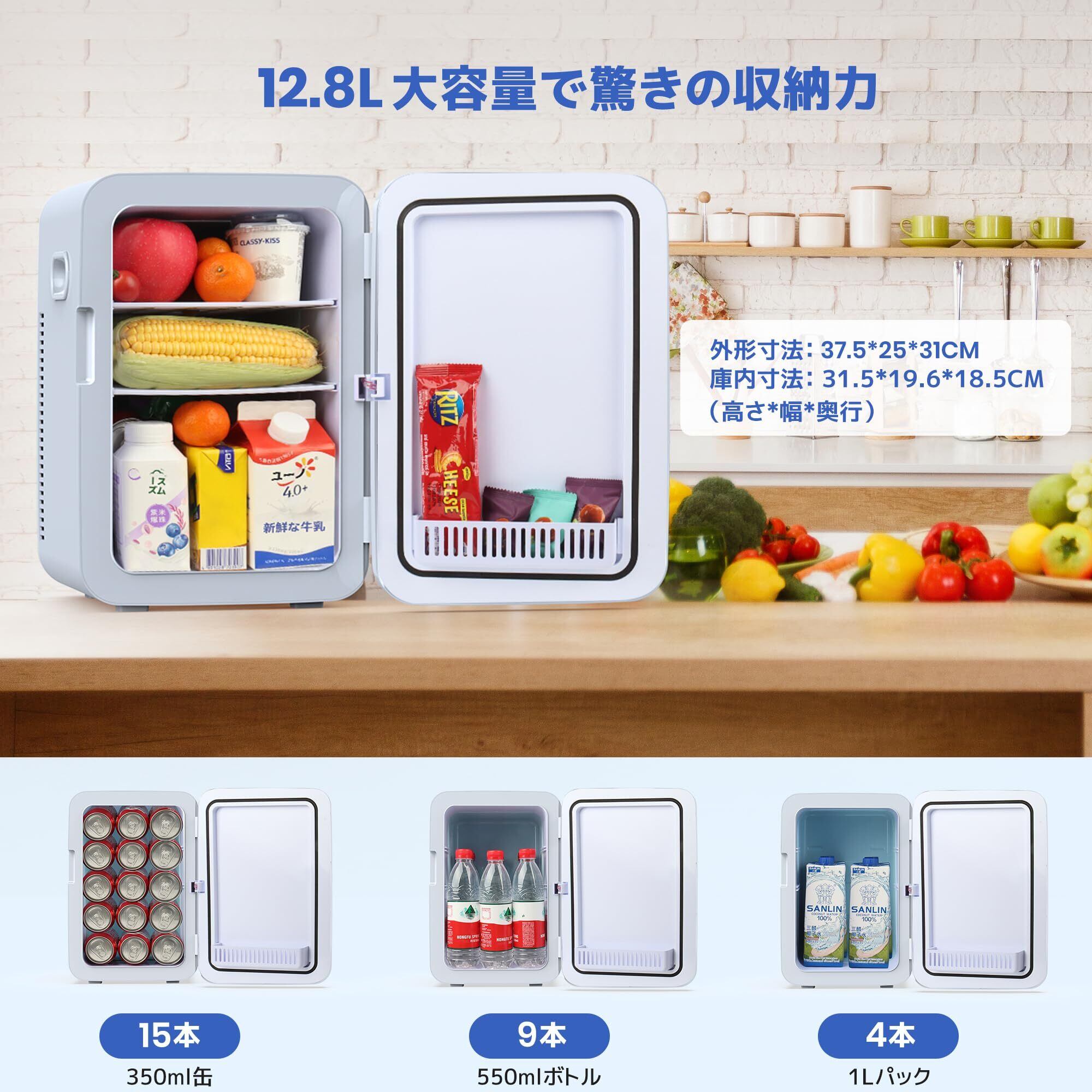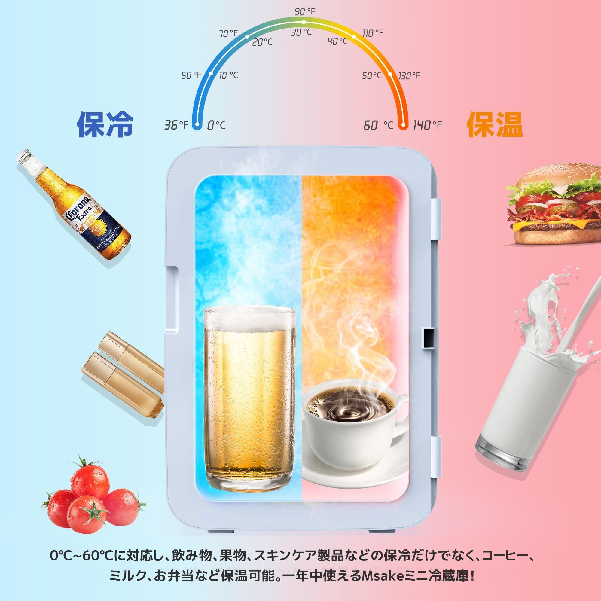 Msake 小型冷蔵庫 12.8L ミニ冷蔵庫 ポータブル冷蔵庫 保温・保冷両用 0℃~60℃ 温度調節可 ダブルペルチェ式 高密度発泡ウレタン 省エネ 静音 タッチ操作 誤操作防止 LCD温度表示 AC/DC給電 12V車対応 車中泊 キャンプ アウトドア 家庭用 日本語説明書 PSE認証済