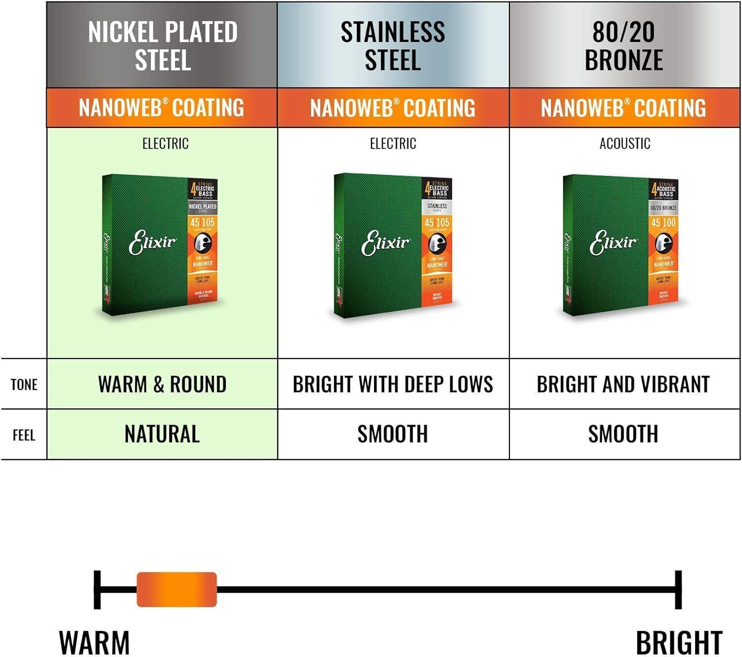 【数量限定】ELIXIR(エリクサー) Elixirベース弦 NANOWEB ニッケル EX-Long Scale Light/Medium .045-.105 #14087 【国内正規品】 | ニコニコSHOP