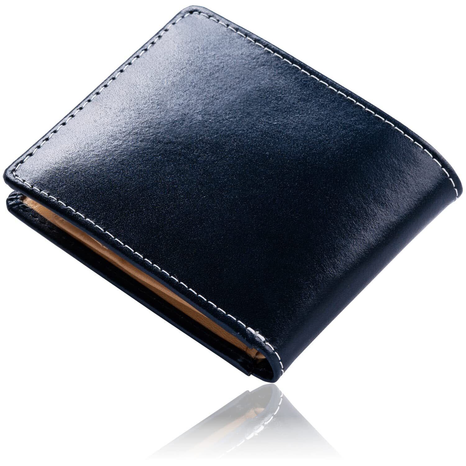 [ムラ] 財布 イタリアンレザー フルグレインレザー メンズ 二つ折り スキミング防止 本革 (イタリアン/ネイビー)