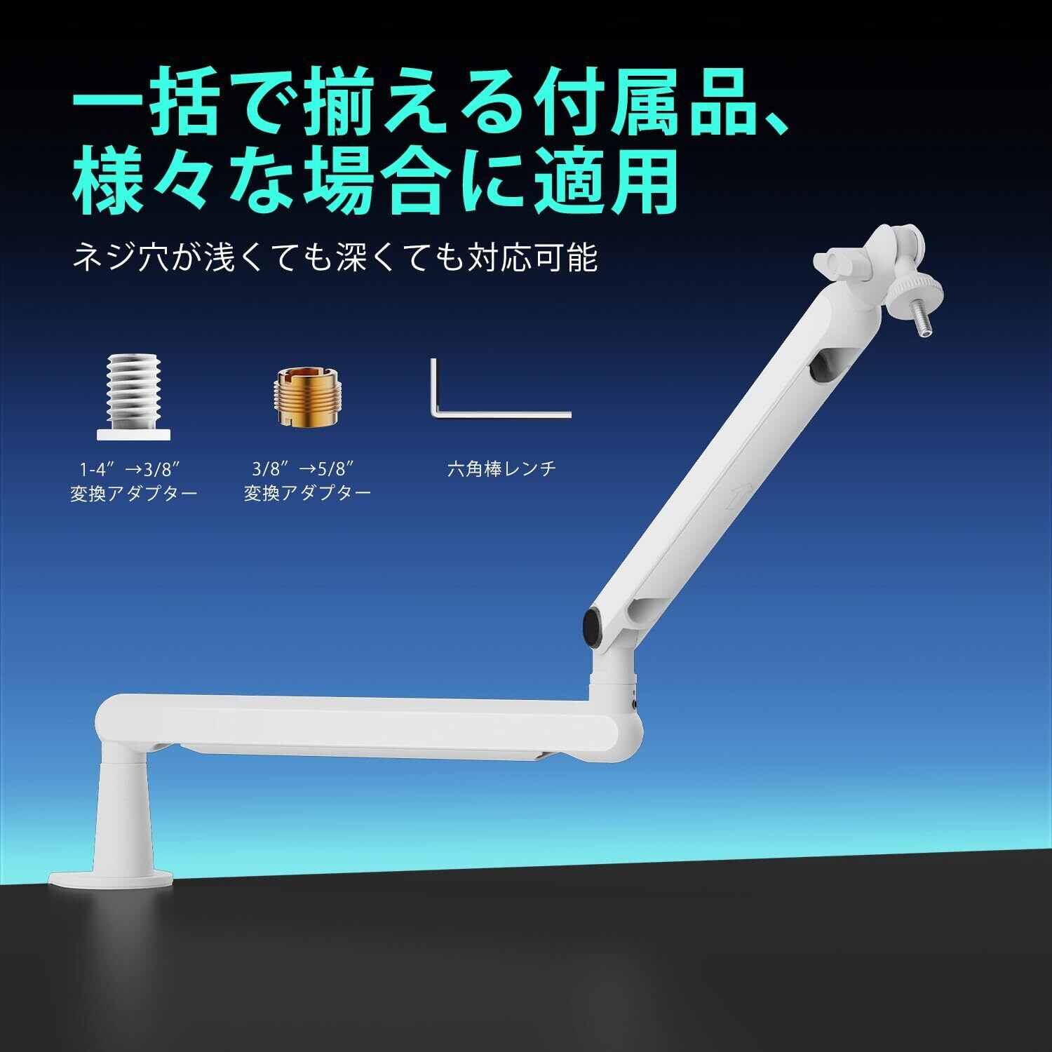【数量限定】FIFINE ブームアーム マイクスタンド マイクアーム コンデンサーマイク用 3/8 5/8 卓上マイクスタンド 下から 角度調節可能 360度回転 金属製 ケーブル収納可能 ゲーム実況 配信 録音 在宅ワーク 白 BM88W | ニコニコSHOP