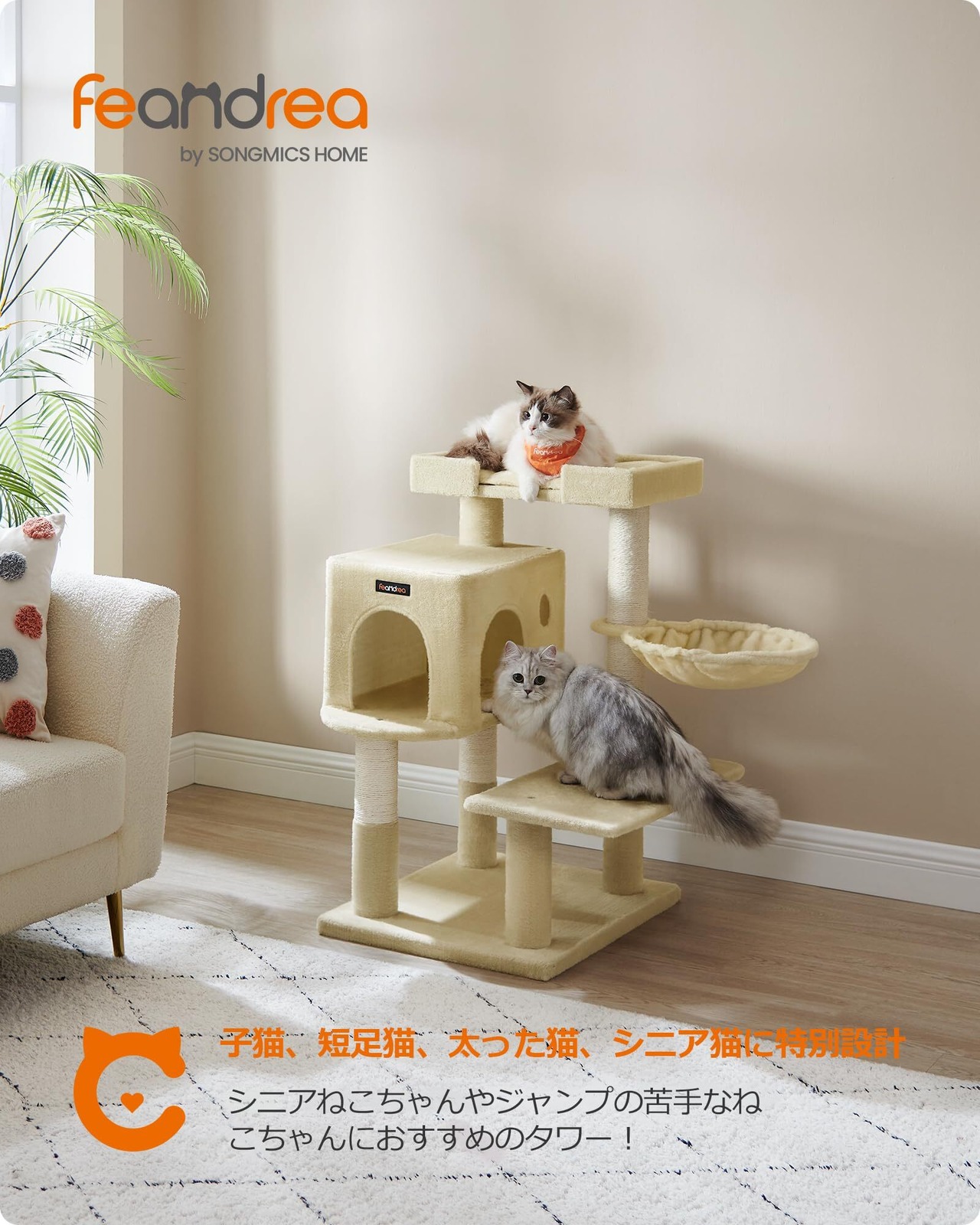 FEANDREA キャットタワー据え置き 多頭飼い 大型猫用 大きい猫にピッタリ 巨大ハウス 広い見晴らし台 PCT42M