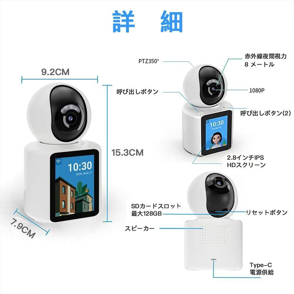 【双方向ビデオ】 2.8インチの画面を備えたカメラで、アクティブに電話をかけて双方向ビデオと双方向音声を実現します。