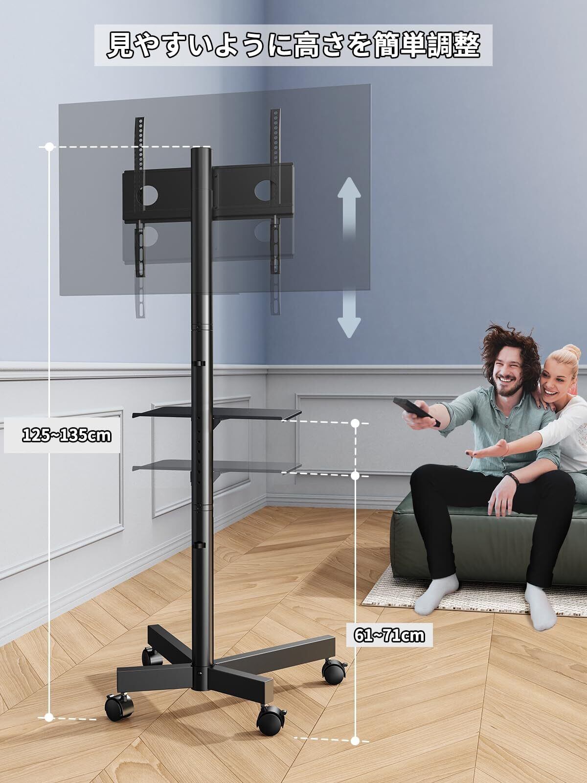【特価商品】Perlegear テレビスタンド キャスター付き ハイタイプ 23~60インチ対応 耐荷重40kg tvスタンド 壁寄せ 移動式 tv stand テレビ台 3段階高さ調整 VESA400x400mm | ニコニコSHOP