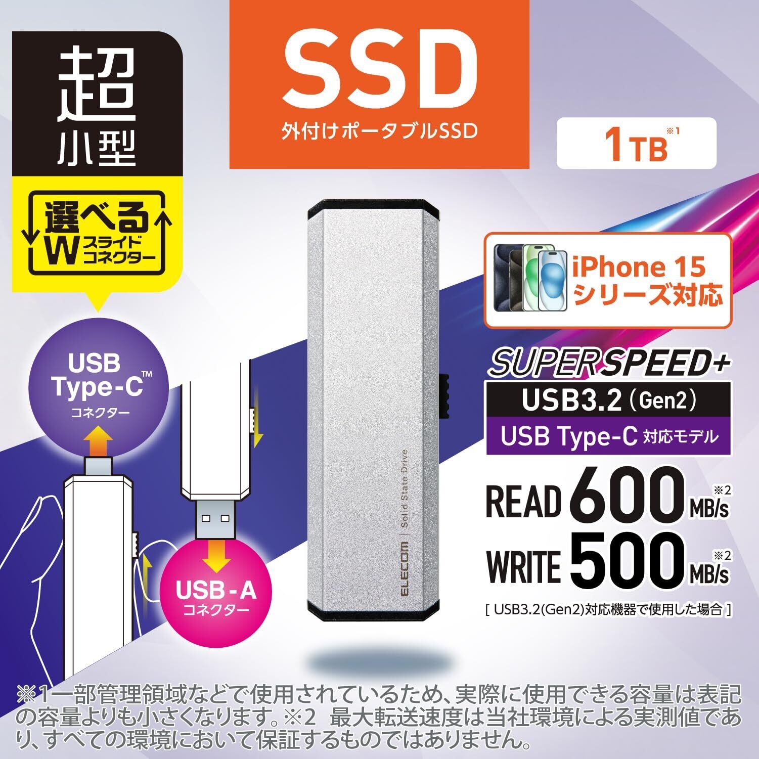エレコム 外付けSSD 1TB USB3.2(Gen1)対応 PS5/PS4(メーカー動作確認済) スライド式 Type-C&Type-A両対応 シルバー ESD-EWA1000GSV