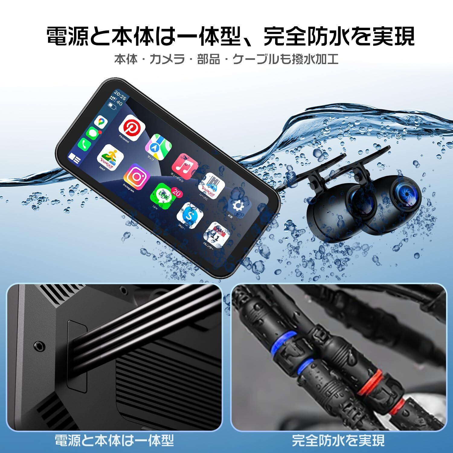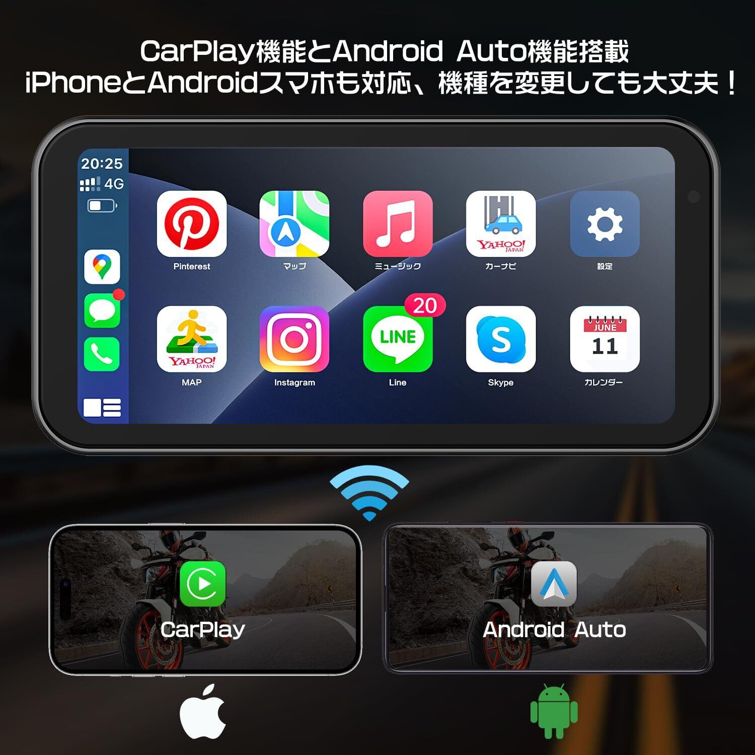 Changer バイク ドライブレコーダー Carplay/Android Auto対応 6.25インチ大画面 バイクドラレコ WiFi搭載 スマホ連動 動輝度調整 IPX7防水防塵 耐熱耐久耐衝撃性 エンジン連動 煽り運転防止 音楽再生/通話/ナビゲーション対応 インカム/BTイヤホン対応 取付ホルダー/有線コントローラー 技適取得済み (MT2(前後カメラ付き))
