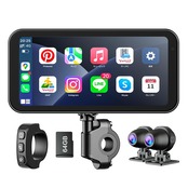 【在庫処分】Changer バイク ドライブレコーダー Carplay/Android Auto対応 6.25インチ大画面 バイクドラレコ WiFi搭載 スマホ連動 動輝度調整 IPX7防水防塵 耐熱耐久耐衝撃性 エンジン連動 煽り運転防止 音楽再生/通話/ナビゲーション対応 インカム/BTイヤホン対応 取付ホルダー/有線コントローラー 技適取得済み (MT2(前後カメラ付き))