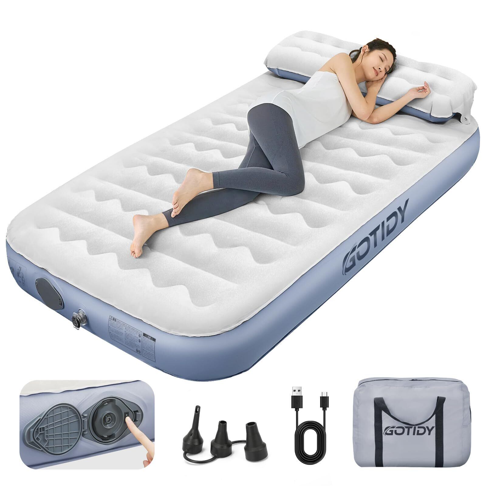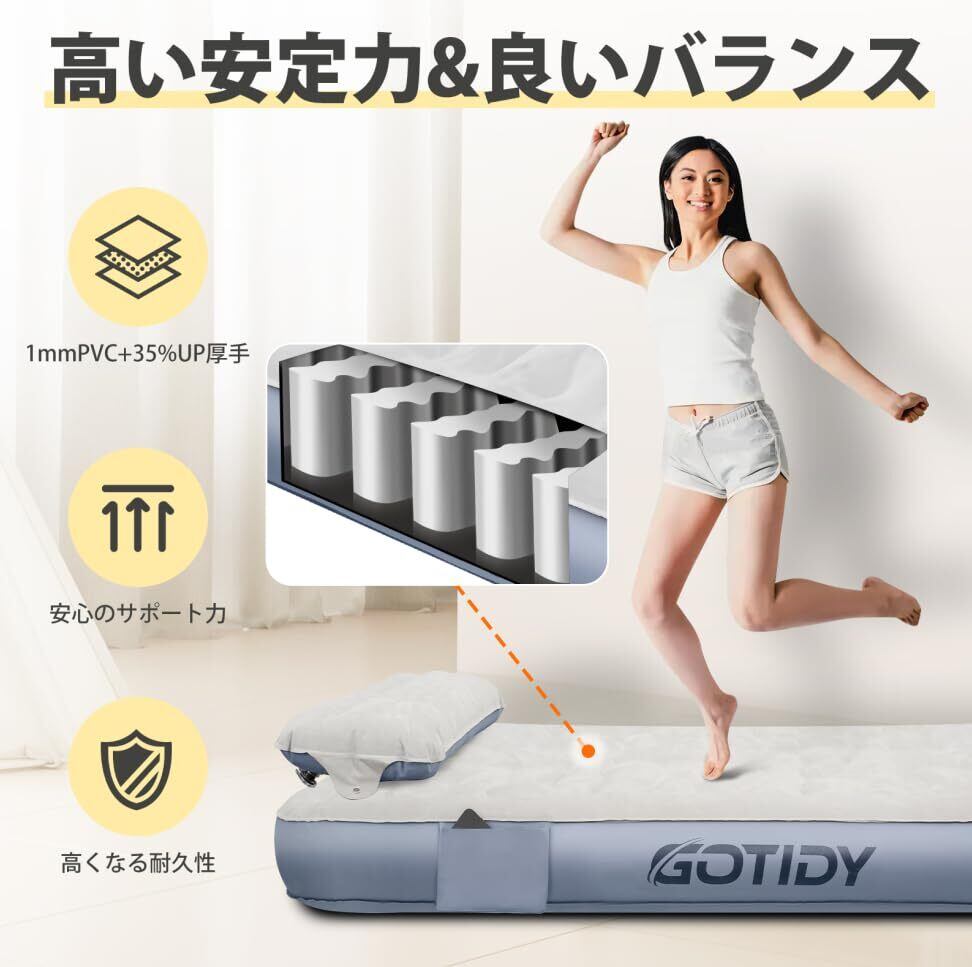 GOTIDY エアーベッド シングル 電動 エアー ベッド キャンプ 空気ベッド シングルサイズ 枕付き 寝心地良い 耐荷重300KG エアベッド 多機能充電式ポンプ 来客用/災害用/帰省用/車中泊用